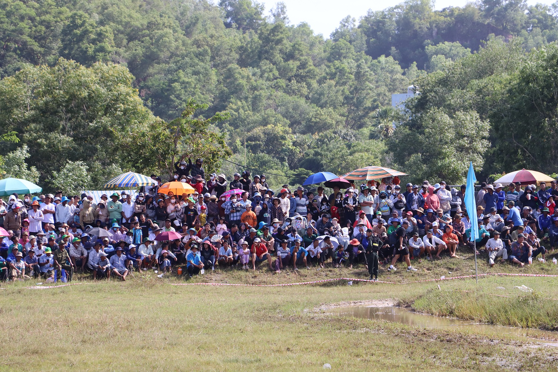 Hội đua bò luôn thu hút đông đảo khán giả, nhất là đồng bào dân tộc Khmer đến cổ vũ.