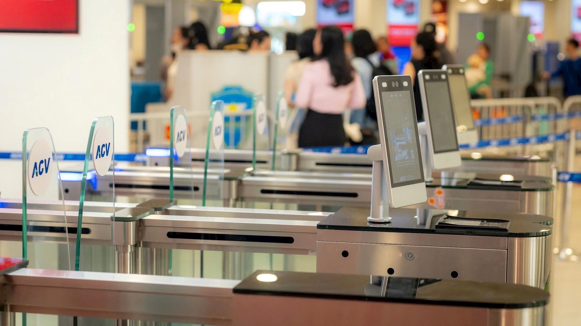 Thiết bị kiểm tra sinh trắc học được lắp đặt tại nhà ga T1. Ảnh: Phan Công