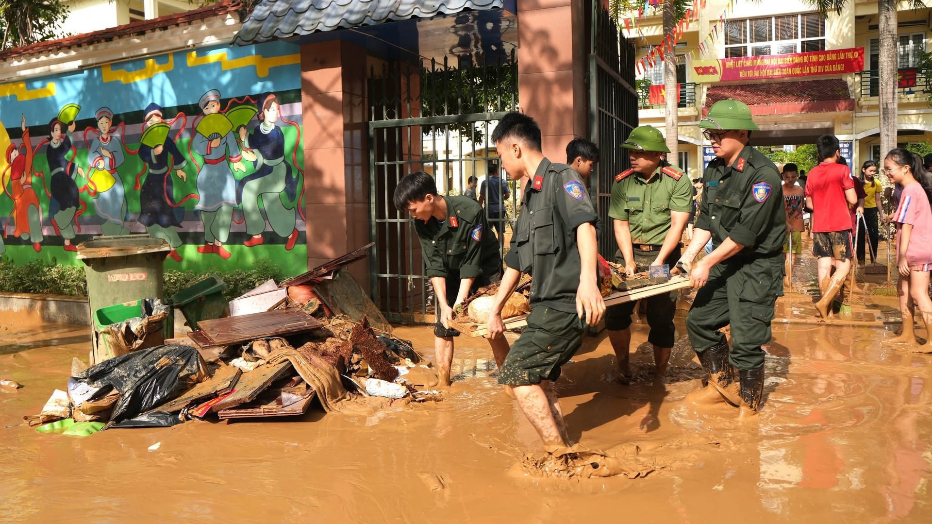 Ngày 3-10, nước lũ đã rút ở nhiều nơi tại Cao Bằng. Tiếp tục thực hiện phương châm "Nước rút tới đâu, dọn dẹp tới đó", Công an tỉnh cùng chính quyền và người dân địa phương bắt tay ngay vào khắc phục hậu quả bão lũ.