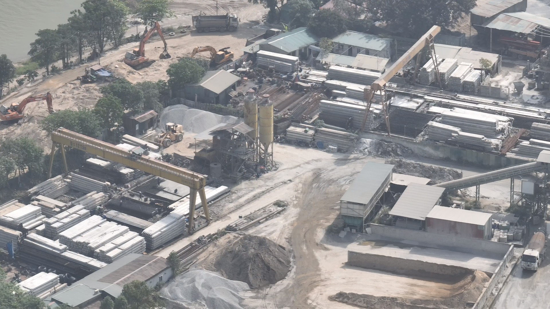 Hàng loạt trạm trộn bê tông, điểm tập kết vật liệu xây dựng mọc lên tại khu vực bãi sông Hồng thuộc địa bàn phường Liên Mạc.
