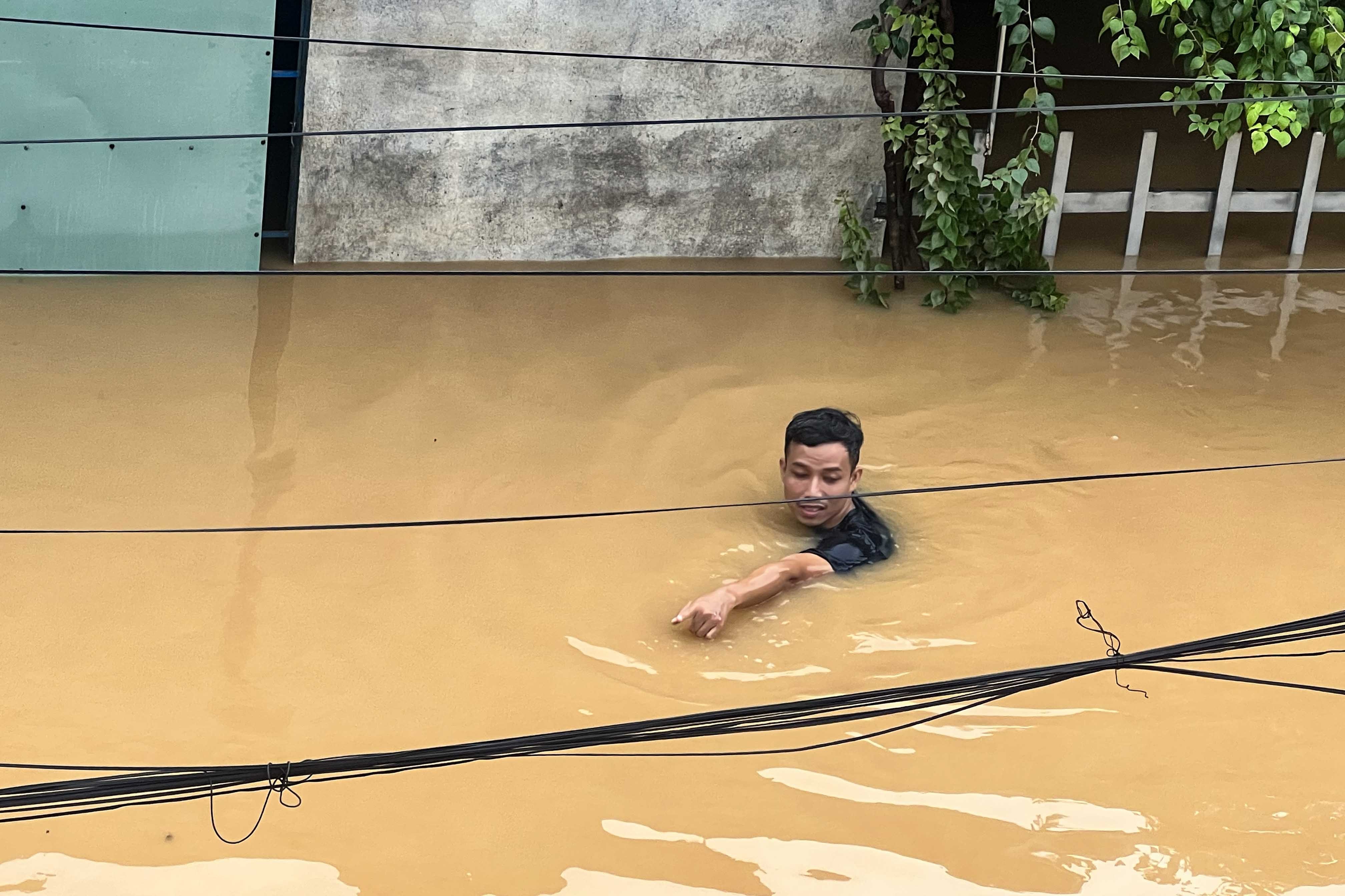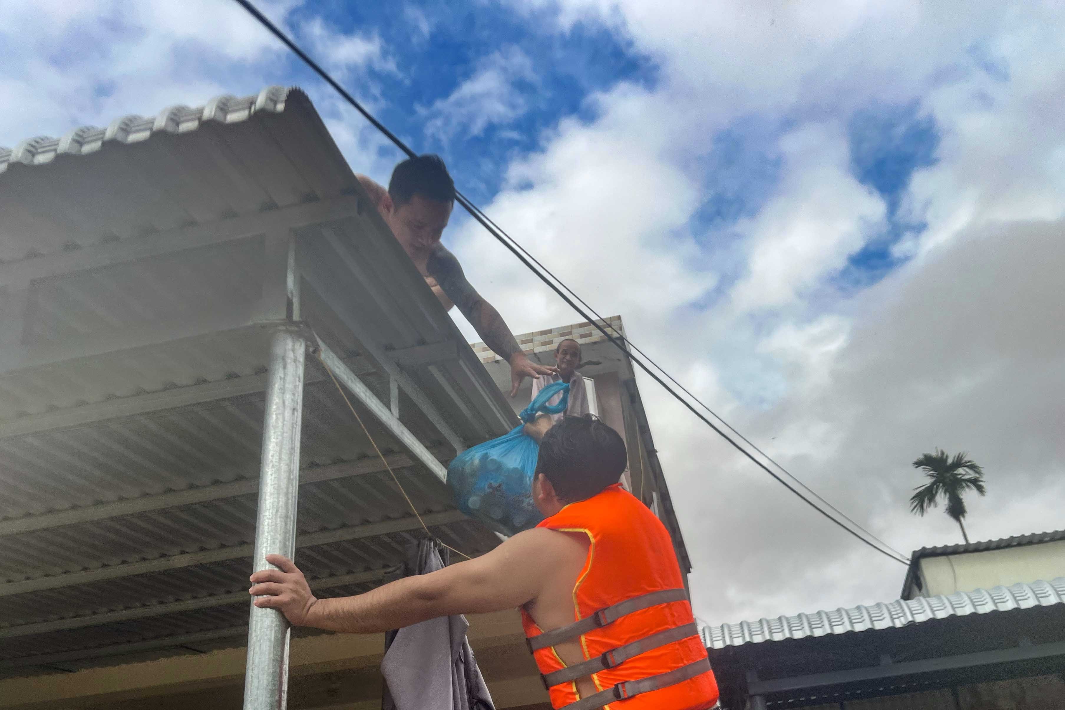 Nước dâng cao, người dân lên mái nhà để tránh trú