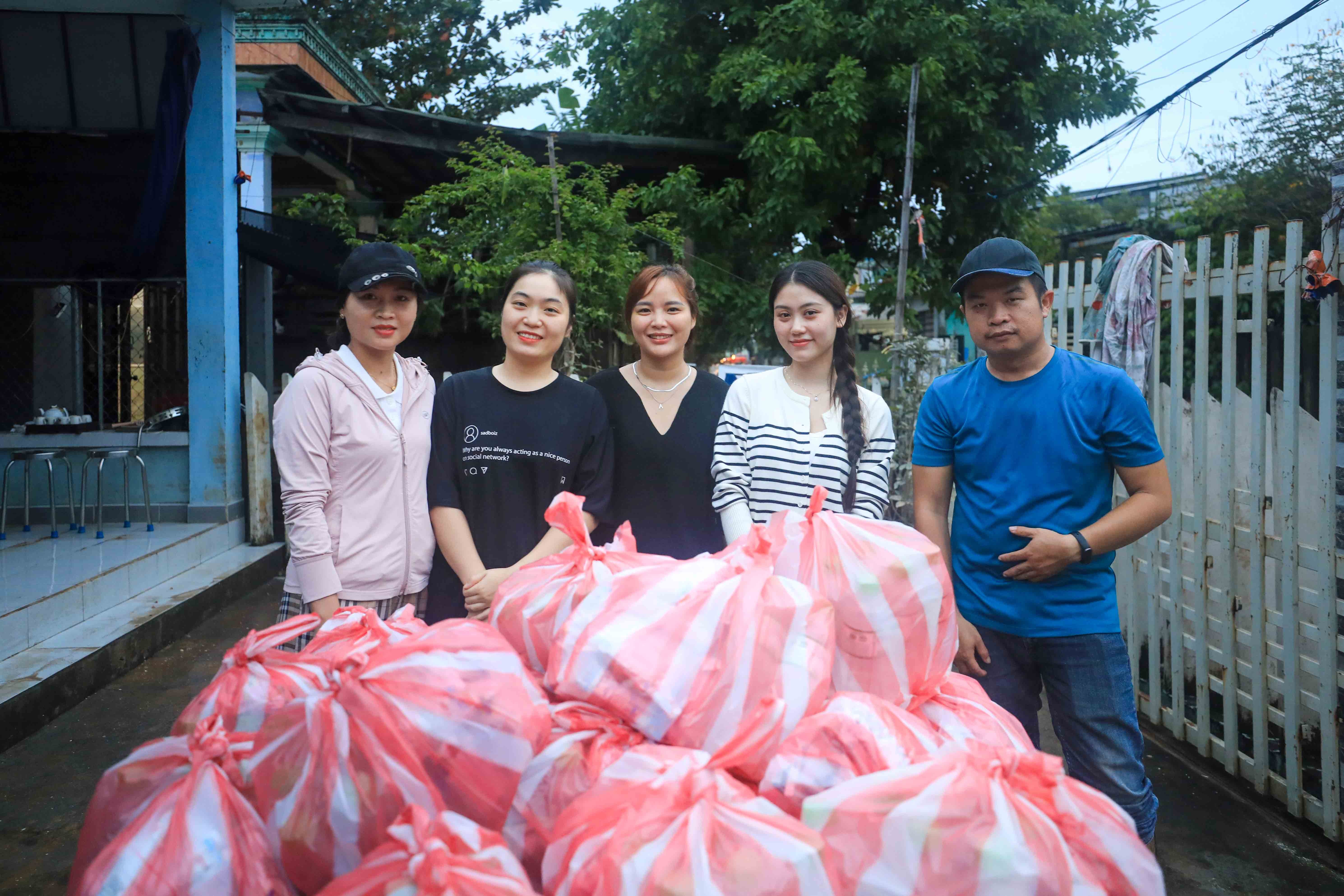 Suốt bốn ngày lụt, cả xóm sống trong cảnh nước bao vây. Không thể nhóm bếp, không có chỗ khô để nấu nướng, bà con chỉ còn mì tôm, nước suối và vài quả trứng gà để cầm cự. Nhà nào còn ít lương thực lại chia sẻ cho nhà khác.
