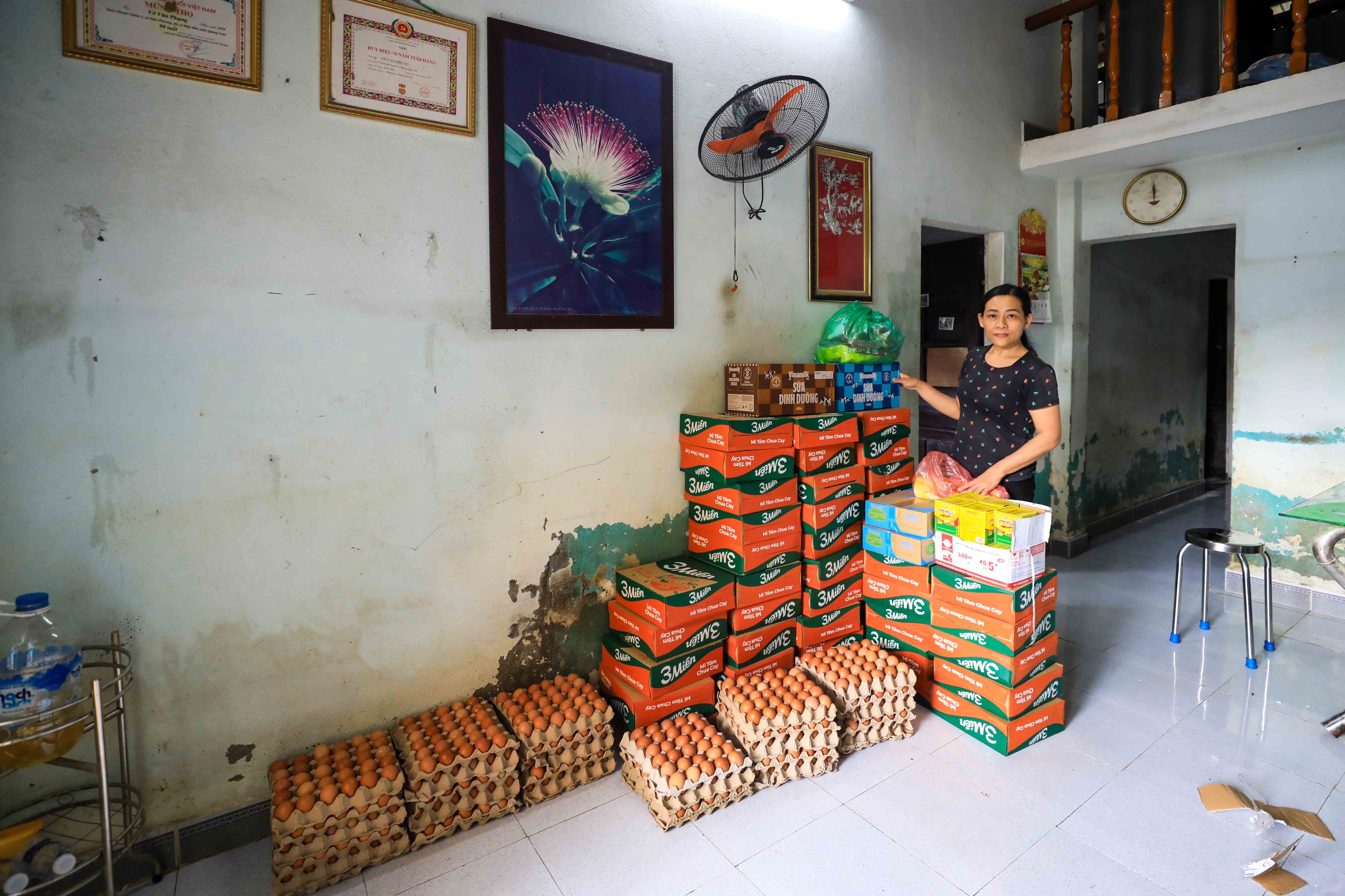 Nhu yếu phẩm của các mạnh thường quân gửi tặng bà con tổ 2