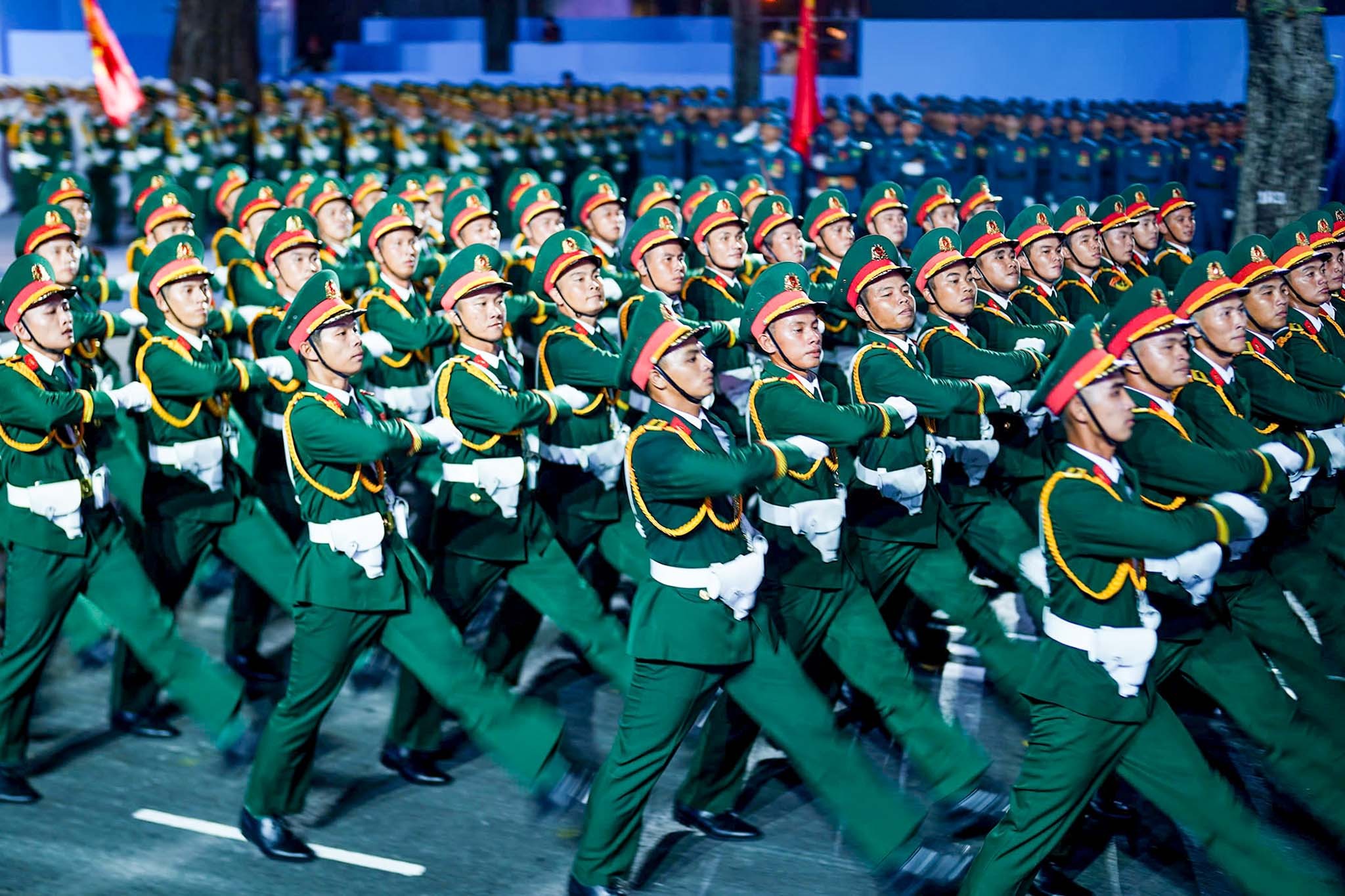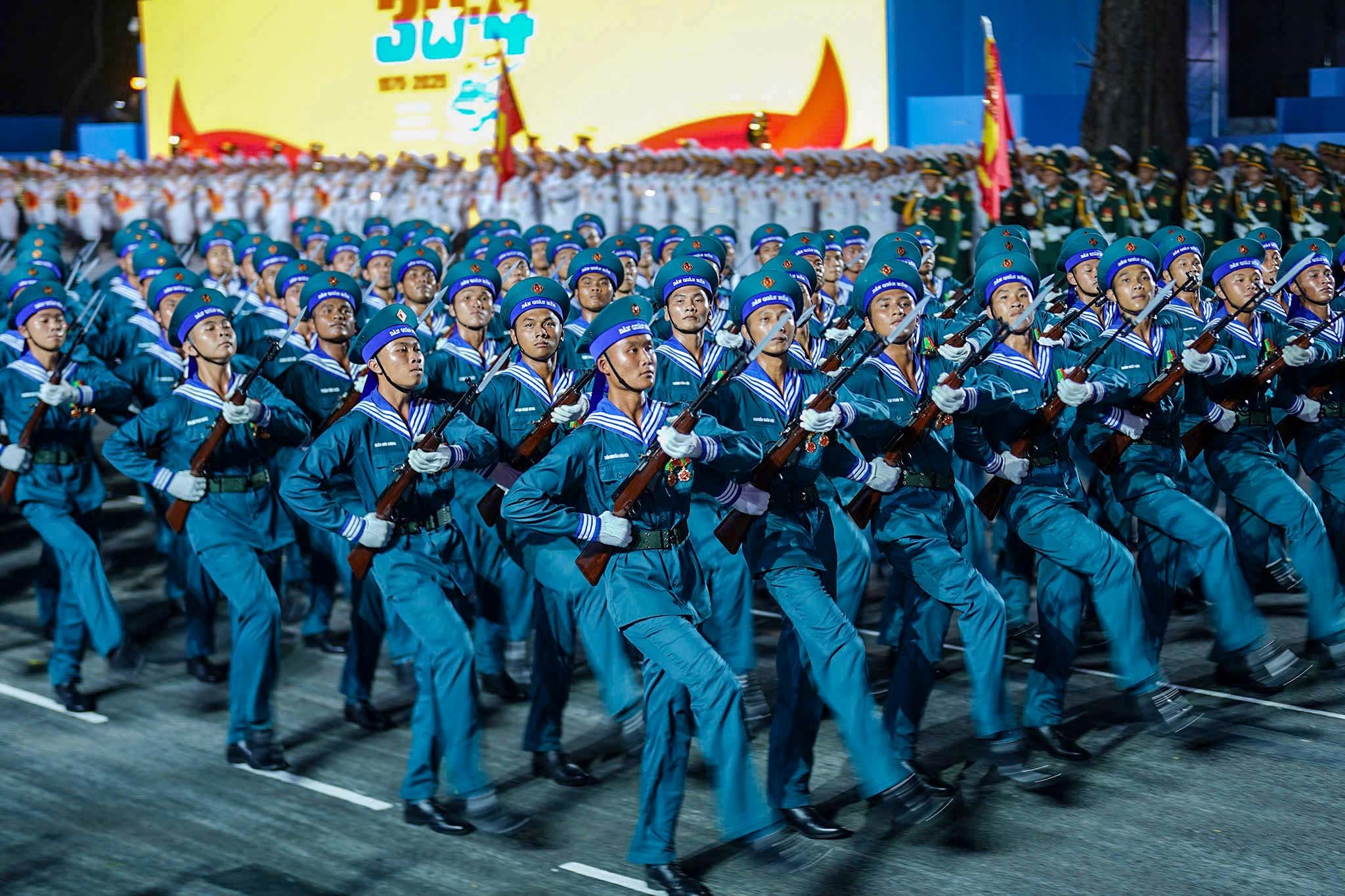 Trên nền nhạc hào hùng, từng bước chân dứt khoát xen với tiếng hô “Tiến!” vang dội, tạo thành nhịp điệu của niềm tin, của khí phách dân tộc. Những hàng quân ngay ngắn ngang qua Dinh Độc Lập – nơi đánh dấu chiến thắng lịch sử ngày 30/4/1975 như một lời nhắc nhở hùng hồn về lịch sử chiến đấu không khoan nhượng của dân tộc ta suốt thế kỷ XX, để giành và giữ từng tấc đất thiêng liêng của Tổ quốc. Không đơn thuần là hoạt động kỹ thuật, những đội hình diễu binh còn là biểu tượng cho bản lĩnh chính trị, cho tinh thần kỷ luật thép, và là kết quả của quá trình huấn luyện gian khổ, trách nhiệm cao độ của lực lượng vũ trang nhân dân.