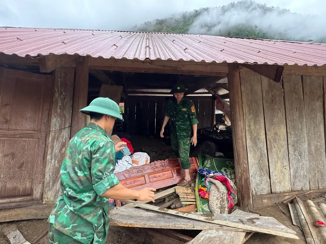 Bộ đội Biên phòng hỗ trợ người dân sửa chữa lại nhà sau lũ.