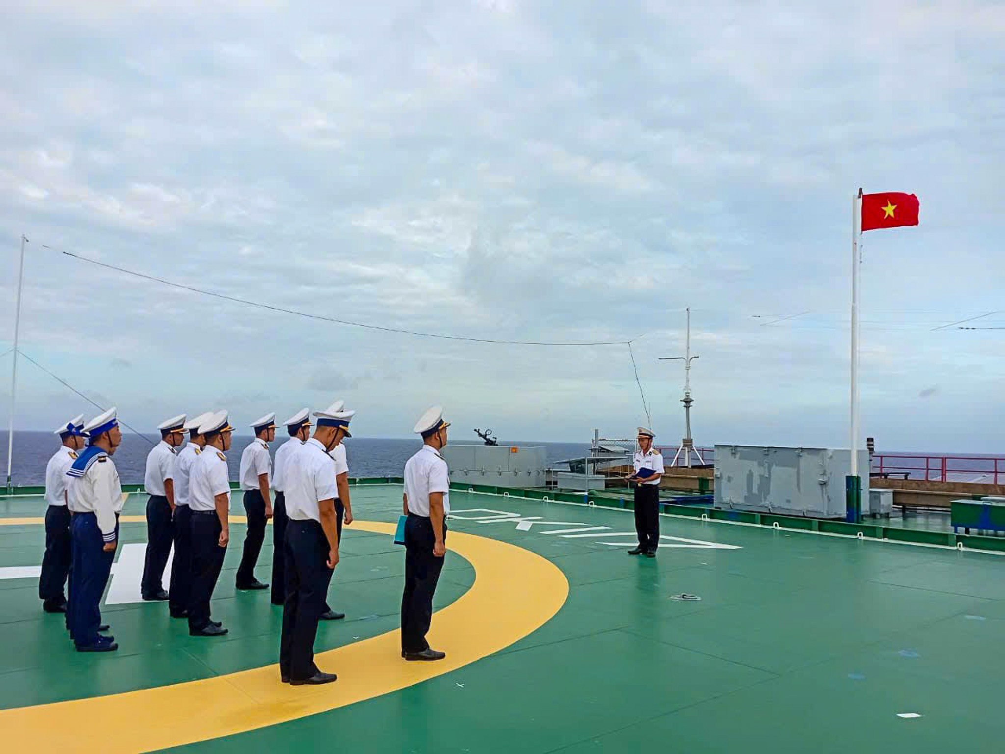 Dưới sự lãnh đạo của Chi bộ mà đứng đầu là Bí thư Trần Văn Đông, năm 2025, Nhà giàn DK1/7 đã hoàn thành xuất sắc toàn diện nhiệm vụ. Hơn 1.300 lượt mục tiêu trên biển được quan sát, phát hiện, chỉ thị chính xác, 10 đoàn công tác với hơn 400 đại biểu được đón, tiễn chu đáo, an toàn. Nhưng có lẽ, những con số ấm áp nhất lại nằm ở công tác dân vận giữa biển khơi: 3 ngư dân được cấp cứu kịp thời, gần 100 lượt ngư dân được cấp thuốc miễn phí, hơn 100 lá cờ Tổ quốc được trao tận tay bà con, 15.000 lít nước ngọt được sẻ chia giữa những ngày khan hiếm.