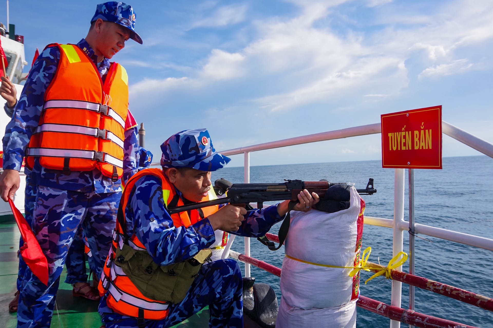 Ở khoa mục bắn súng bộ binh trên biển, cán bộ, chiến sĩ giữ vững bản lĩnh, bình tĩnh, tự tin, thao tác chính xác, bắn trúng mục tiêu bay tầm thấp và mục tiêu mặt biển. Những loạt đạn xé gió, dội thẳng vào mục tiêu thể hiện sự thuần thục trong huấn luyện, khả năng hiệp đồng chặt chẽ và tinh thần quyết chiến, quyết thắng.