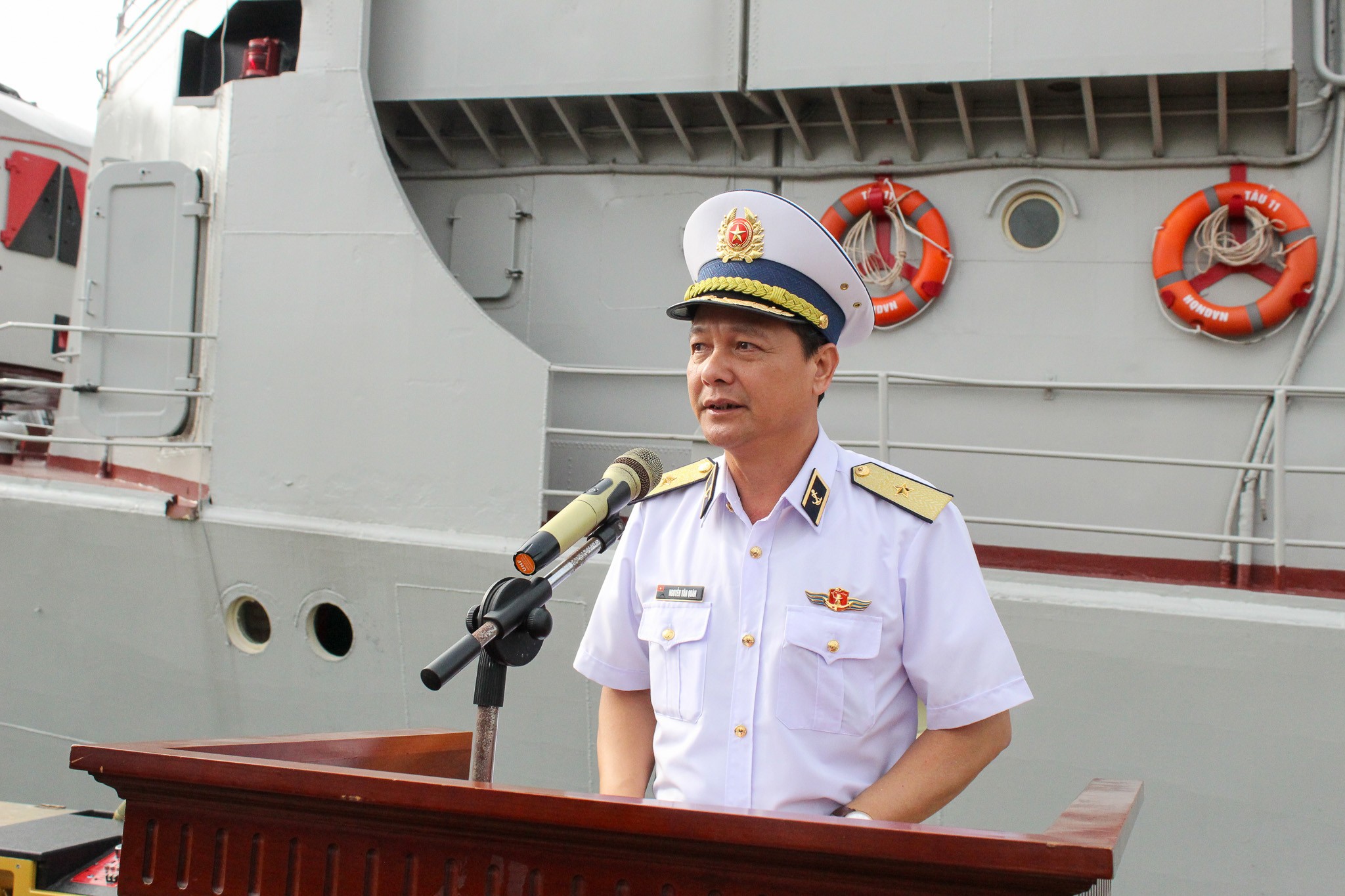 Chuẩn Đô đốc Nguyễn Văn Quán, Tư lệnh Vùng phát biểu chúc mừng đoàn công tác và hai tàu