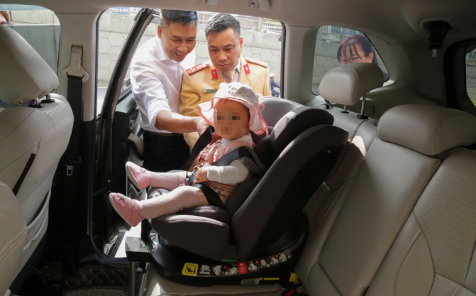 CSGT hướng dẫn cách lắp ghế trẻ em trên ô tô.