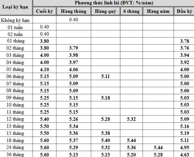 Lãi suất ngân hàng NCB tháng 4/2026 - kênh quầy
