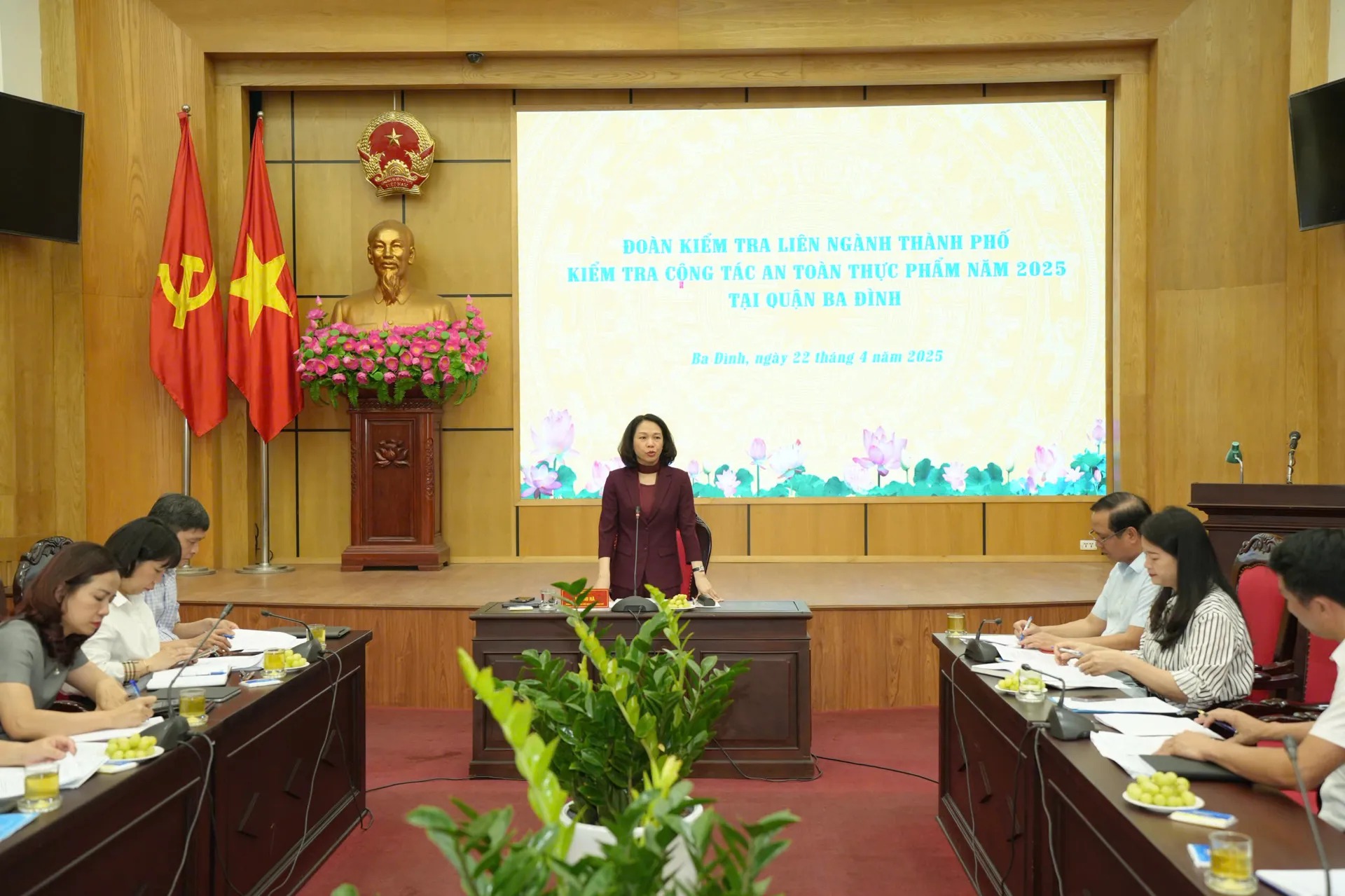 Tại buổi làm việc, Phó Chủ tịch UBND quận Ba Đình Phạm Thị Diễm cho biết, trên địa bàn quận có 3.631 cơ sở sản xuất, kinh doanh thực phẩm, 3 trung tâm thương mại, 7 siêu thị, 7 chợ. Triển khai Tháng hành động vì ATTP năm 2025, quận đã thành lập 18 đoàn kiểm tra. Đến nay, các đoàn đã kiểm tra 192 cơ sở; xử lý vi phạm hành chính 6 cơ sở với 30 triệu đồng.