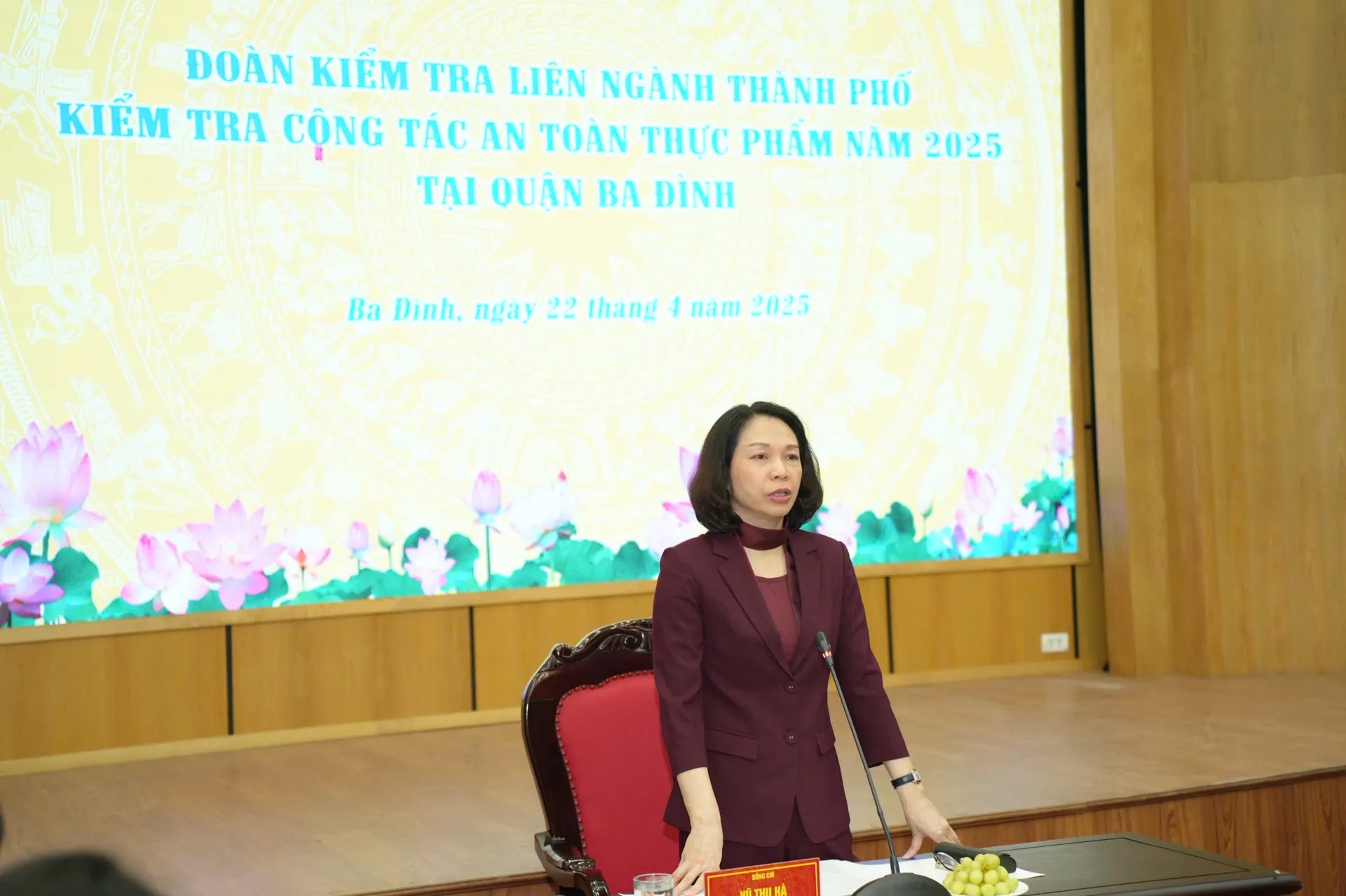 Phó Chủ tịch UBND TP Hà Nội Vũ Thu Hà phát biểu tại cuộc làm việc kiểm tra công tác ATTP quận Ba Đình.