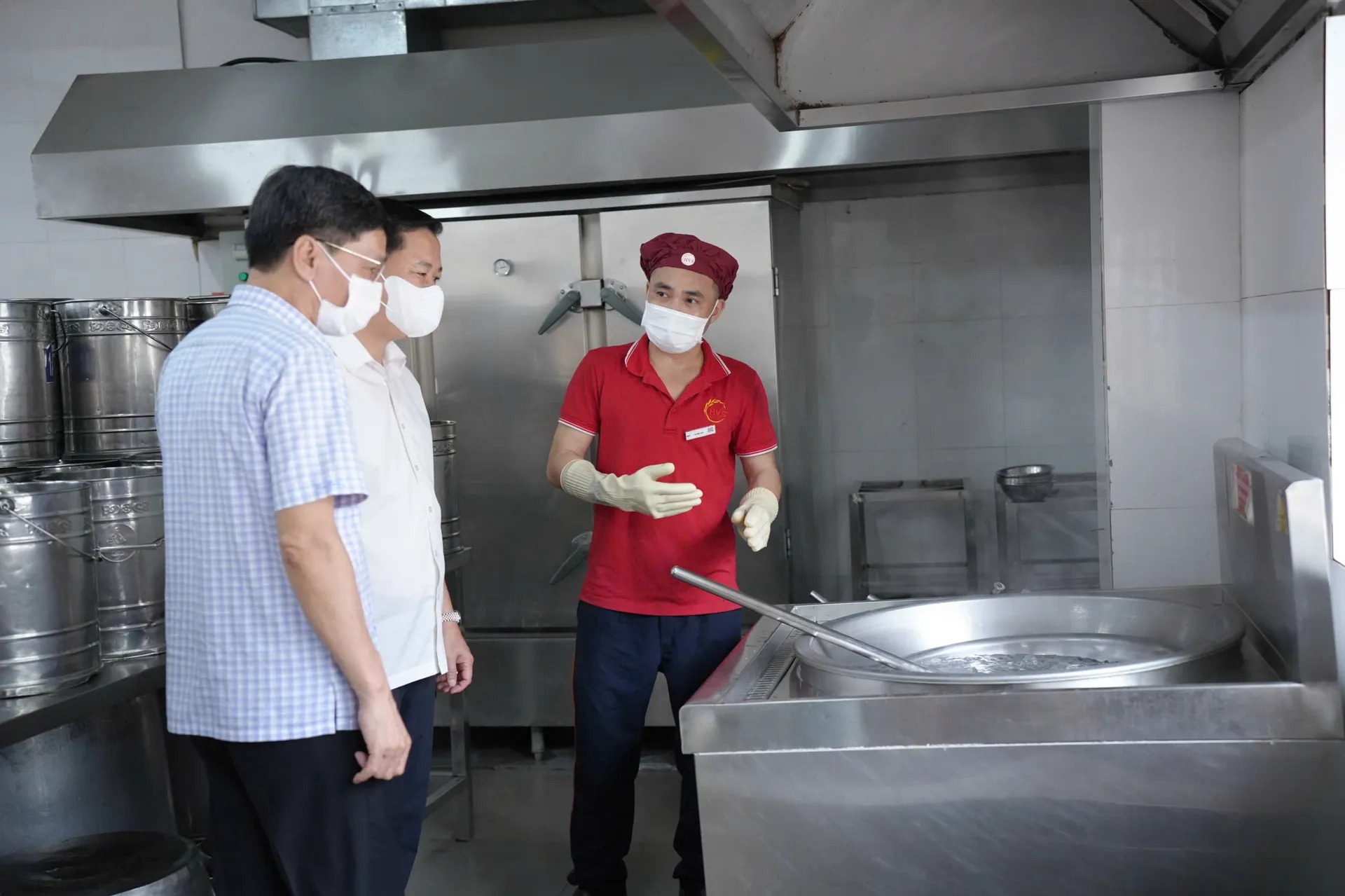 Kiểm tra bếp ăn tập thể của Trường Tiểu học Ngọc Khánh.