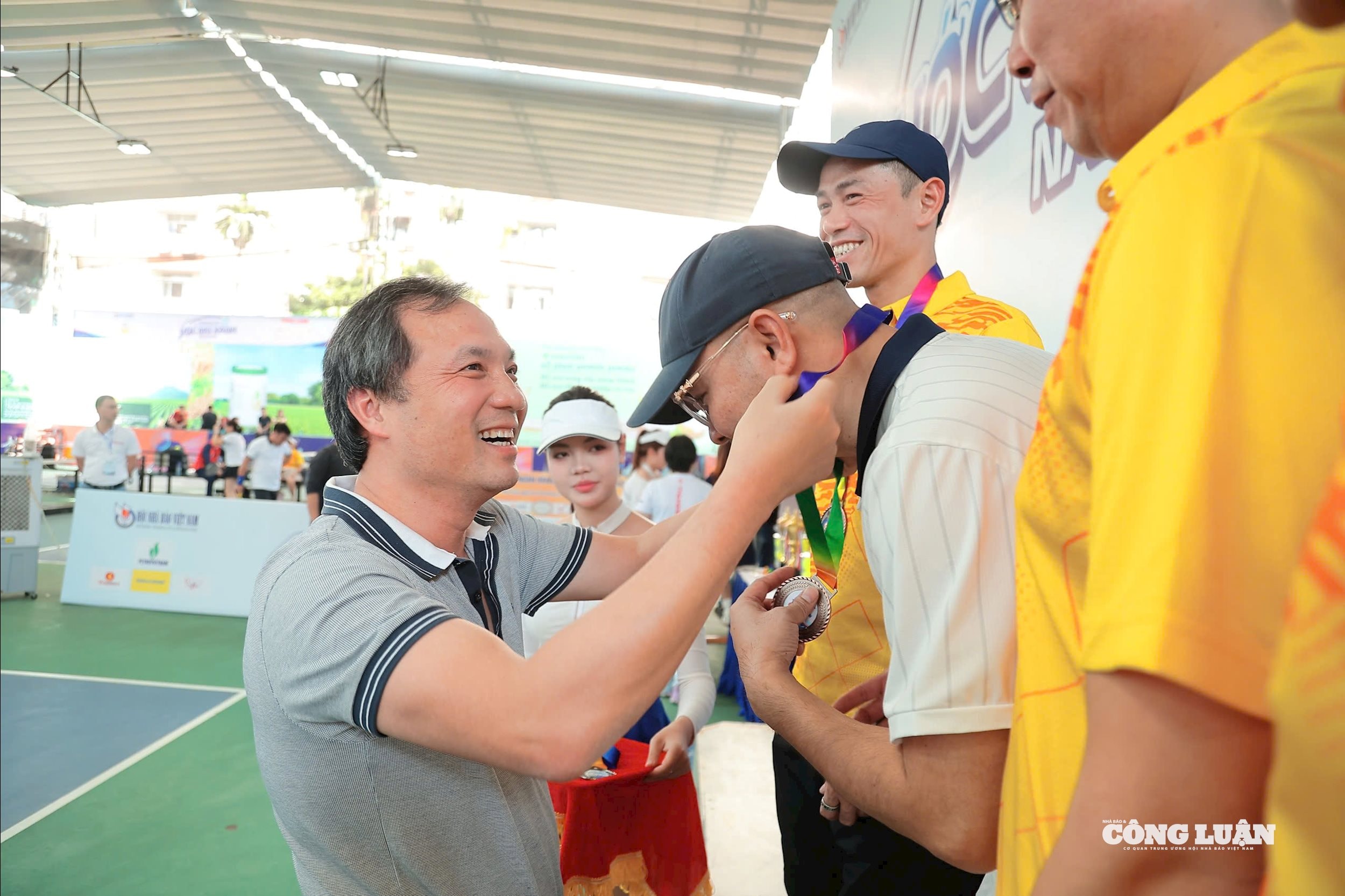 TS Hoàng Trung Dũng, Ủy viên Trung ương Đảng, Tổng Biên tập Tạp chí Cộng sản và nhà báo Lê Trần Nguyên Huy, Tổng biên tập Báo Nhà báo và Công luận, Trưởng Ban Tổ chức giải trao Huy chương và Cup cho các vận động viên ở nội dung đôi nam trên 40 tuổi.