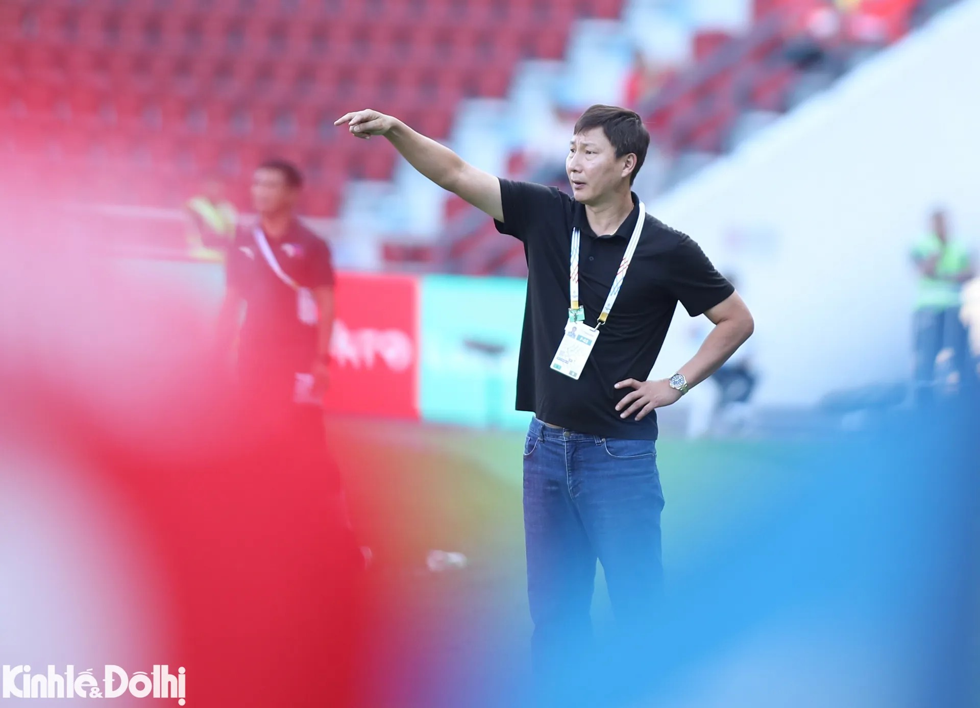 HLV Kim Sang-sik tỏ ra khá sốt ruột khi các học trò không thể ghi được bàn thắng để tạo lợi thế trước đối thủ.