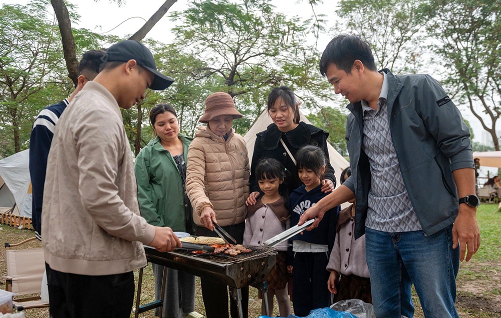 Không khí ấm áp của một gia đình cắm trại tại Công viên Yên Sở (phường Yên Sở).
