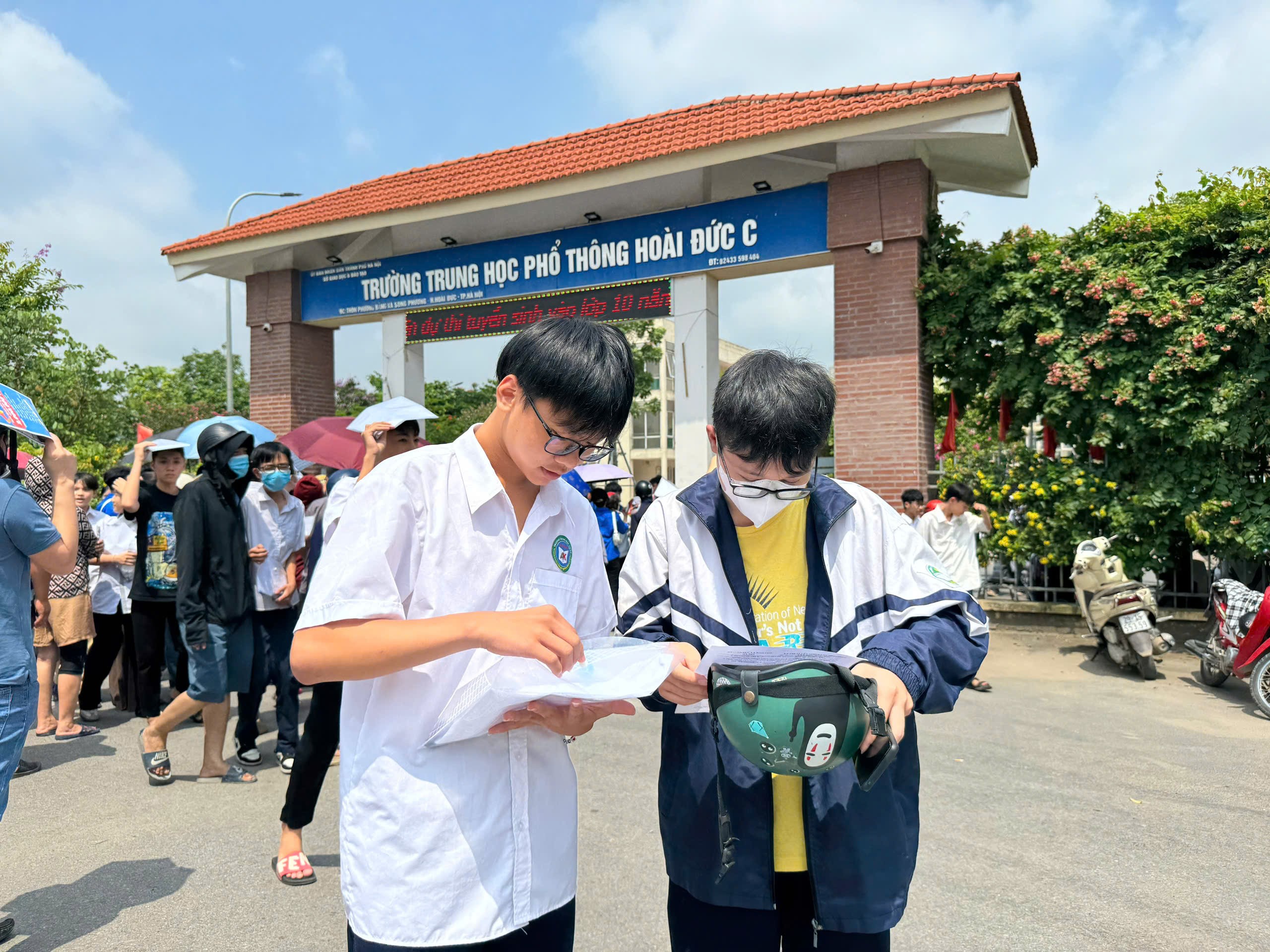 Thí sinh sau buổi thi vào lớp 10 tại điểm thi THPT Hoài Đức C