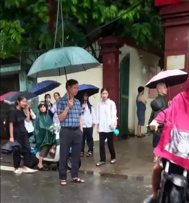Sáng 30/9, giữa trời mưa xối xả, nhiều phụ huynh, học sinh Trường THPT Lê Quý Đôn – Hà Đông vô cùng xúc động khi thầy giáo Hiệu trưởng Nguyễn Gia Khánh đứng tại cổng trường, cầm ô, đón các học sinh lần lượt vào trường.