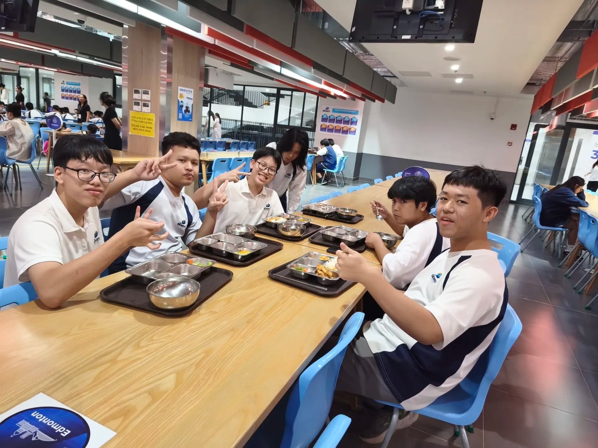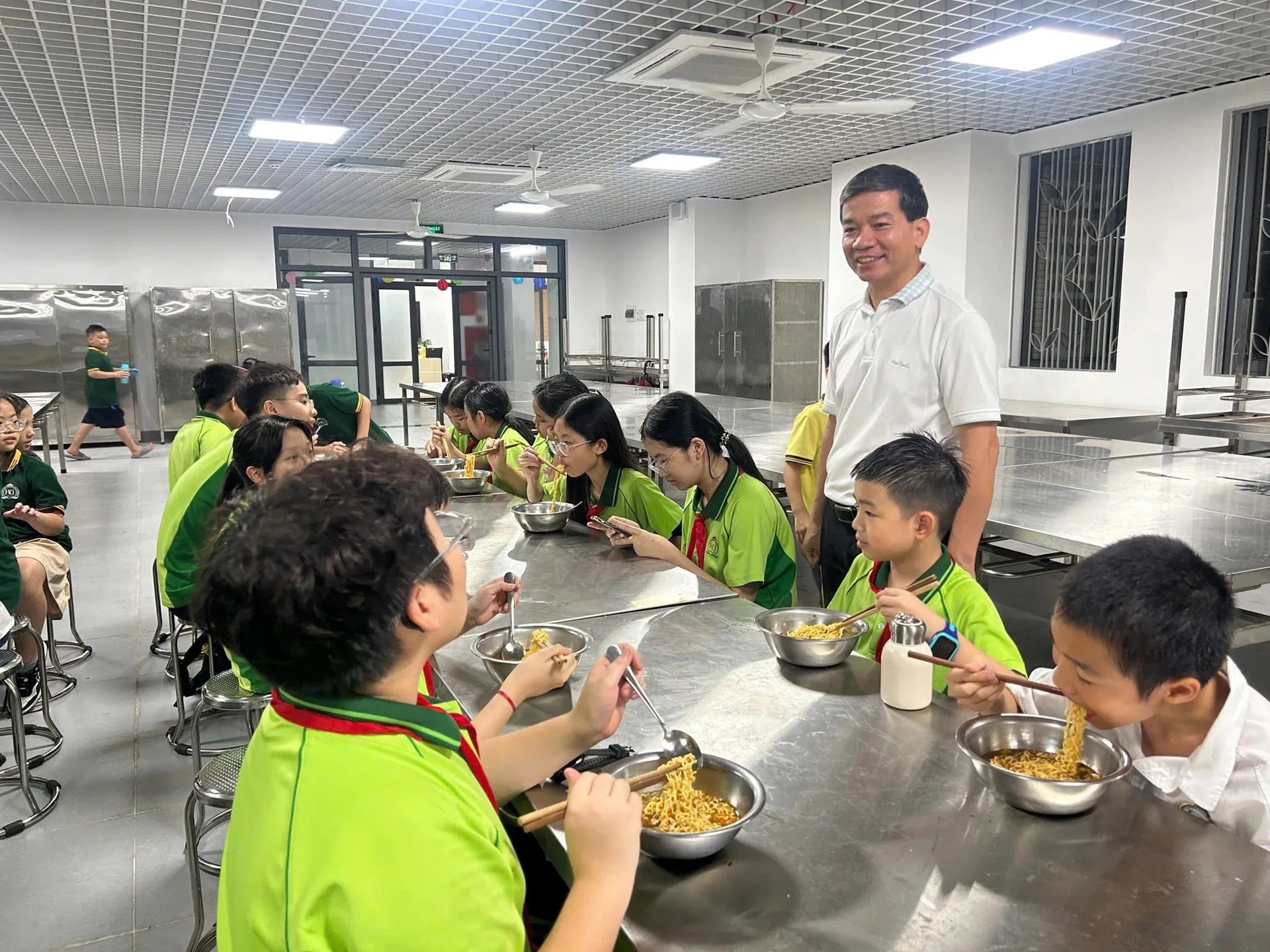 Học sinh Trường Dewey ăn tại trường tối 30/9.
