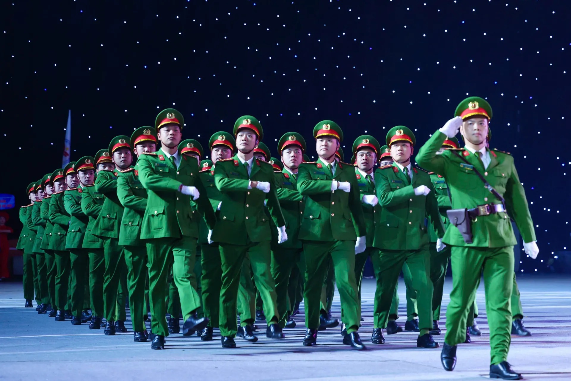 Khối vận động viên Công an TP diễu hành qua lễ đài.