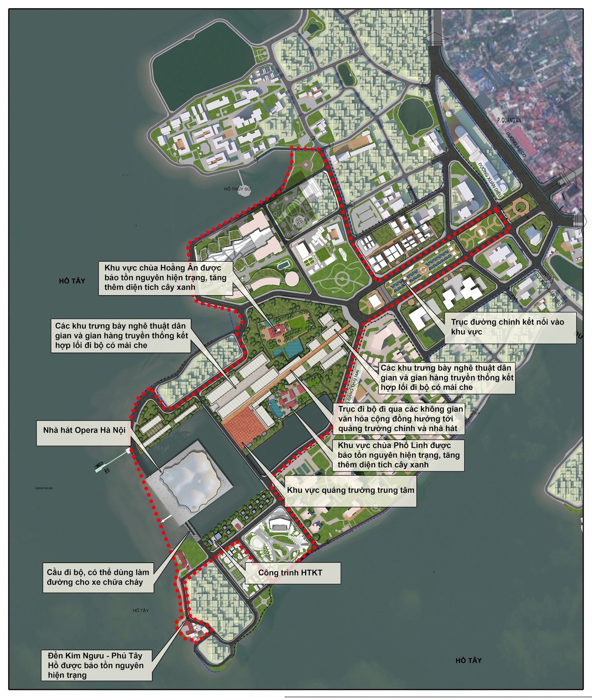 Theo phê duyệt, tổng diện tích khu đất lập quy hoạch hơn 44ha tại phường Tây Hồ, trở thành quần thể công viên văn hóa - nghệ thuật chuyên đề, nhà hát thành phố, công trình tôn giáo, tín ngưỡng, khu vui chơi giải trí và dịch vụ khách sạn, thương mại.