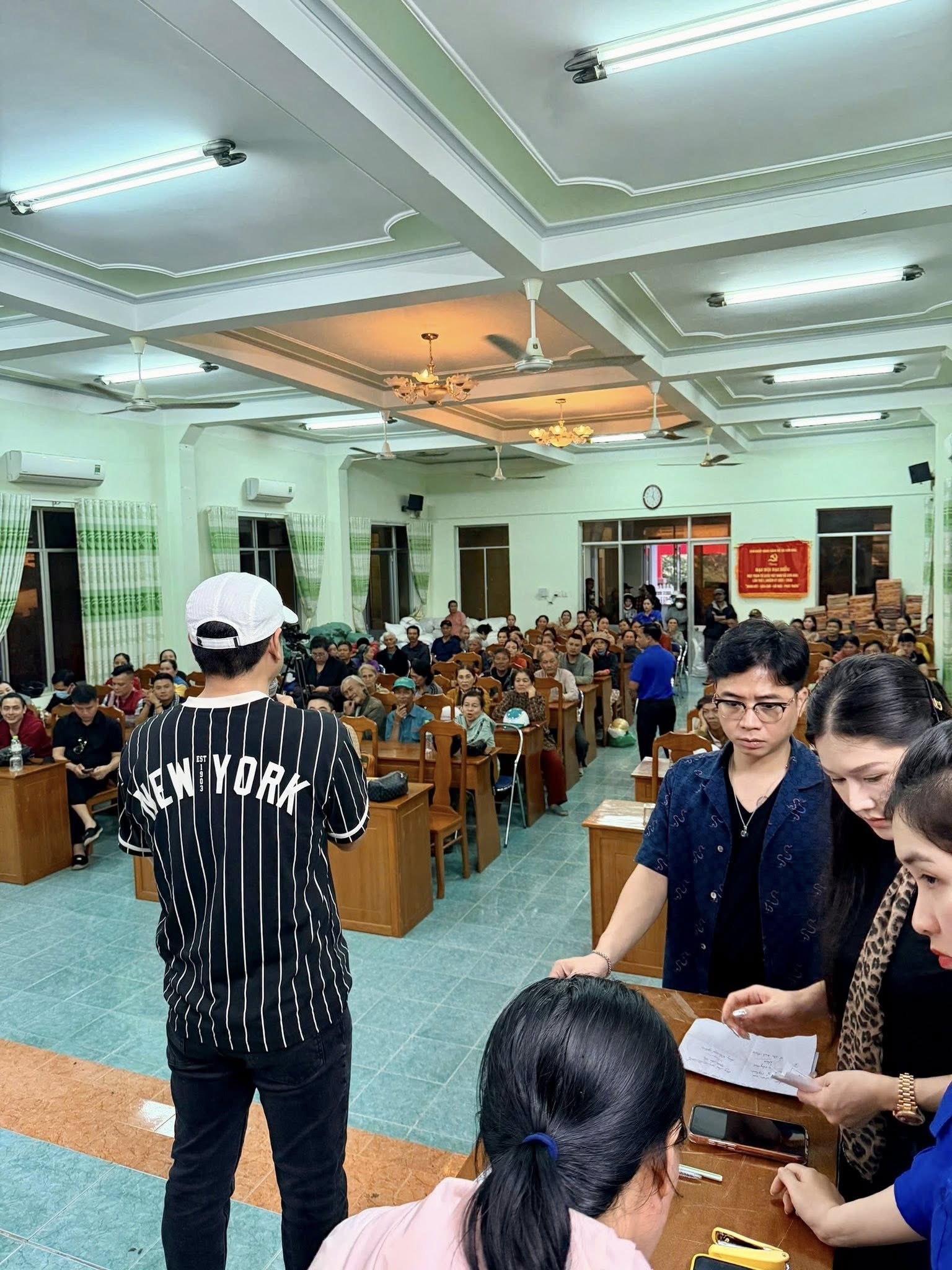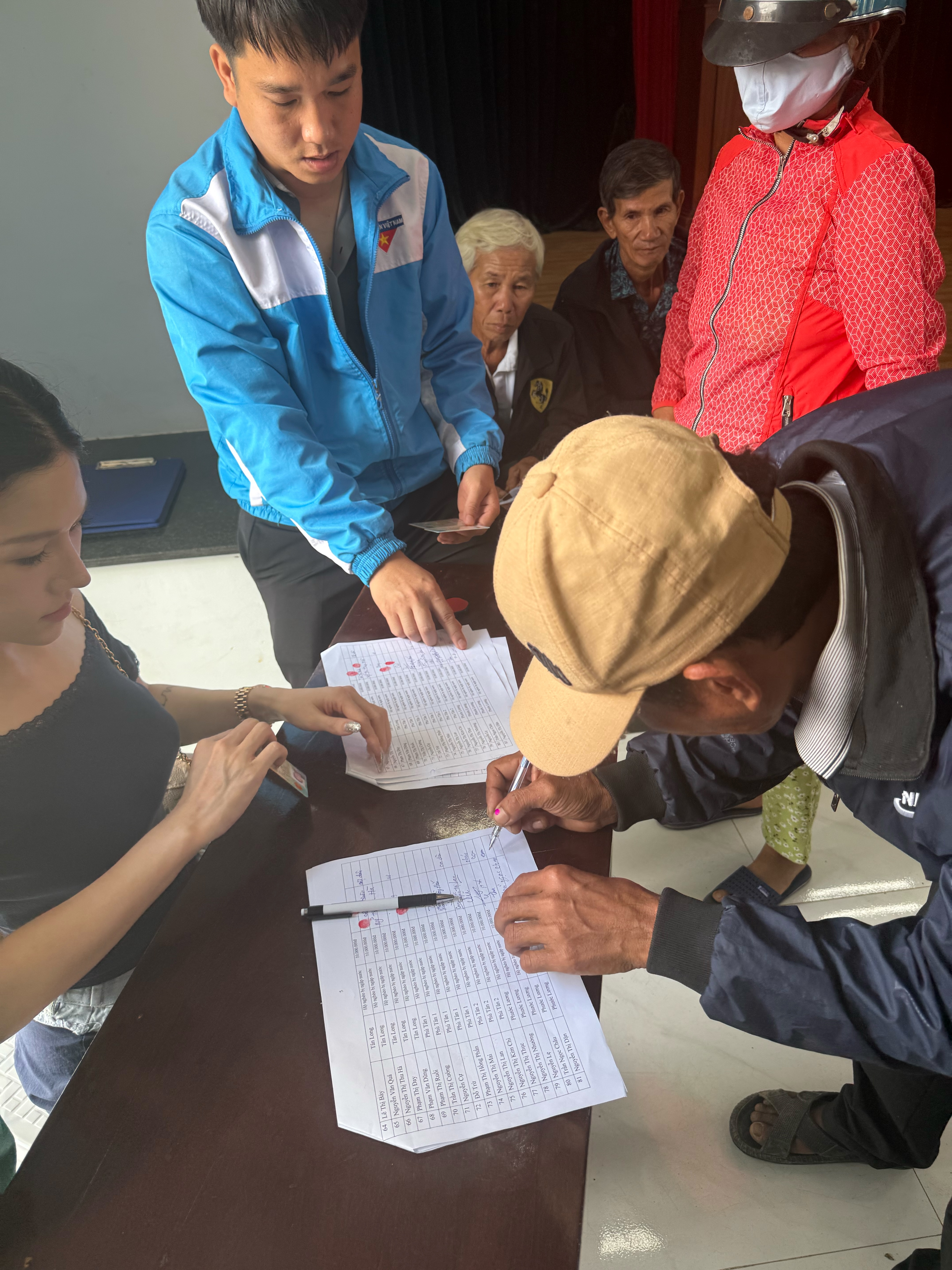 Tại đây, đoàn thiện nguyện đã trao 100 suất quà, mỗi suất trị giá 10 triệu đồng, với tổng giá trị 1 tỷ đồng. Những phần quà không chỉ là hỗ trợ vật chất, mà còn là sự nâng đỡ tinh thần cho những hộ dân chịu thiệt hại nặng nề nhất. Khi từng phong bì được trao đi, có những đôi mắt đỏ hoe vì xúc động, có những cái ôm siết đầy biết ơn, và có cả những lời chúc gửi lại từ bà con – những lời chúc chứa đựng sức mạnh khiến cả đoàn như được tiếp thêm động lực cho hành trình phía trước.