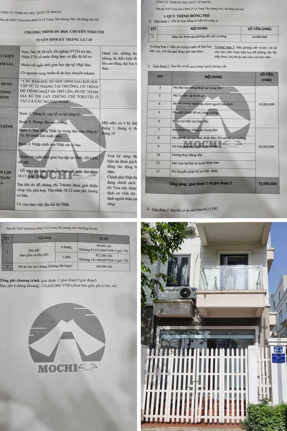 Trụ sở cũng như bảng giá phí của Công ty TNHH Du học quốc tế Mochi.