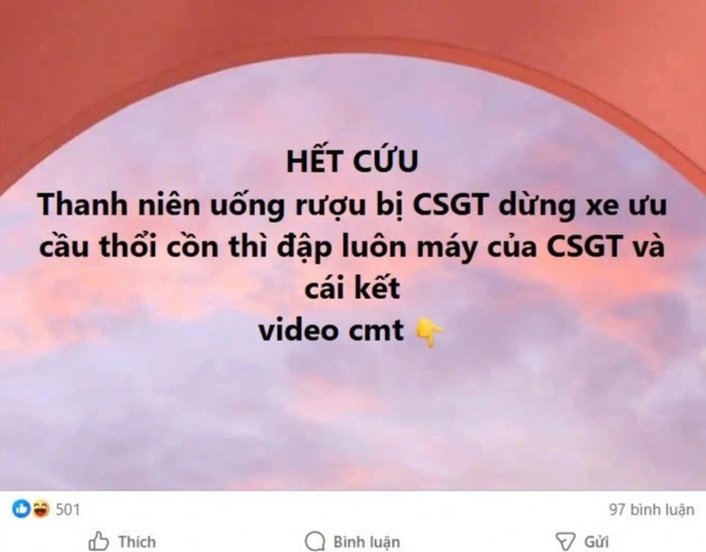 Ngày 4/1, trên mạng xã hội xuất hiện bài viết với nội dung “thanh niên uống rượu bị CSGT dừng xe yêu cầu thổi cồn thì đập luôn máy của CSGT và cái kết”. Kèm theo bài viết là một đoạn clip ghi lại cảnh một người đàn ông và một người phụ nữ to tiếng tại khu vực chốt kiểm tra của lực lượng CSGT đang làm nhiệm vụ. Ngay sau khi được đăng tải, thông tin này nhanh chóng lan truyền, thu hút nhiều ý kiến bình luận trái chiều từ cộng đồng mạng.