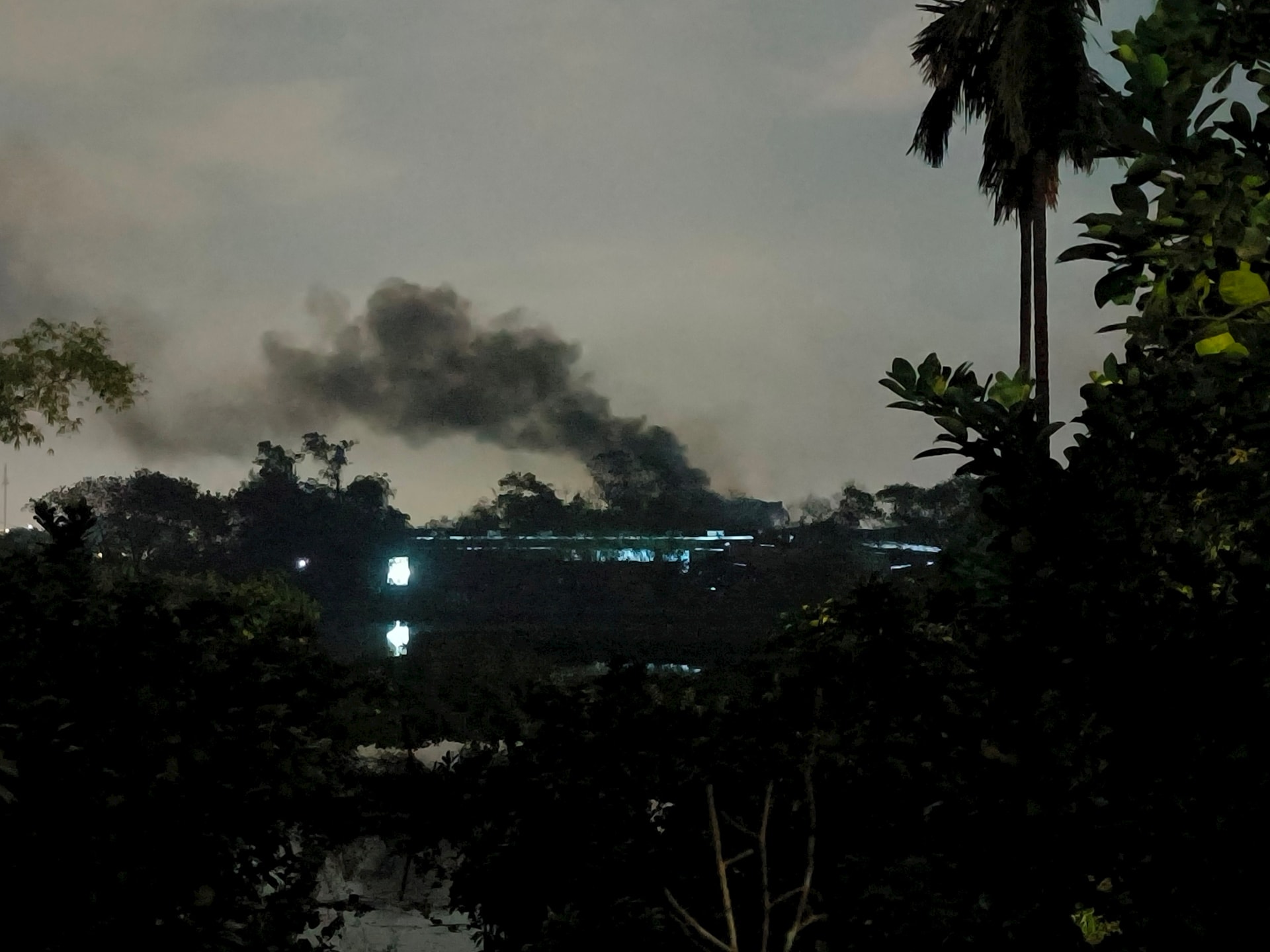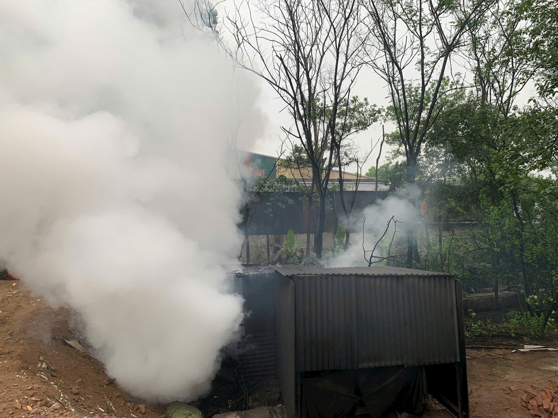 Một số cơ sở hấp, nhuộm vải hoạt động không phép ở thôn Vân Côn, xã An Khánh thường đốt chất thải buổi tối, gây ô nhiễm môi trường và ảnh hưởng đến sức khỏe người dân. Ảnh: Đức Duy