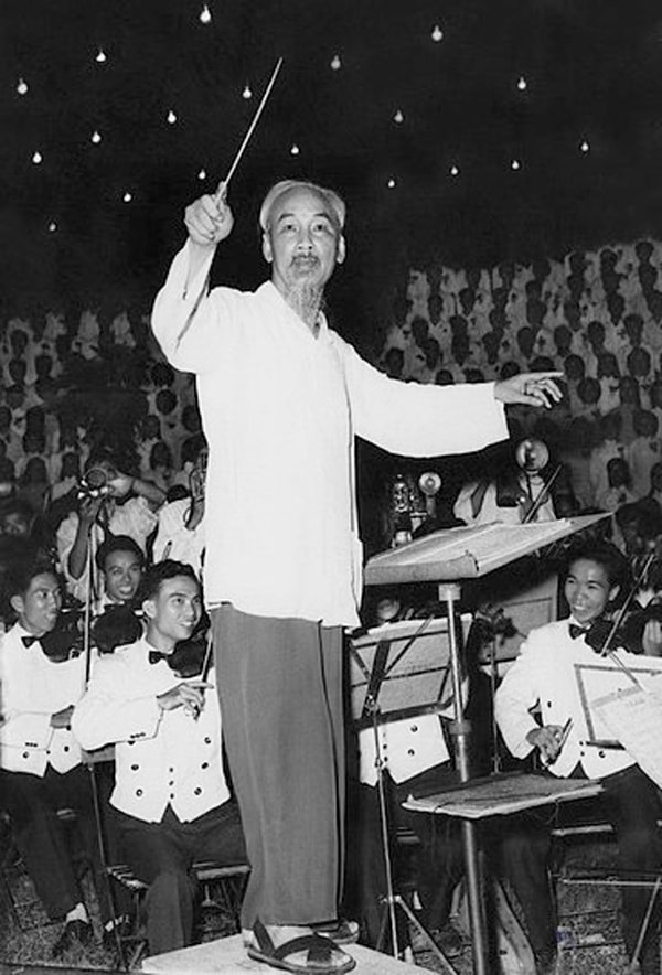 Bác Hồ bắt nhịp bài ca kết đoàn. Ảnh: Lâm Hồng Long