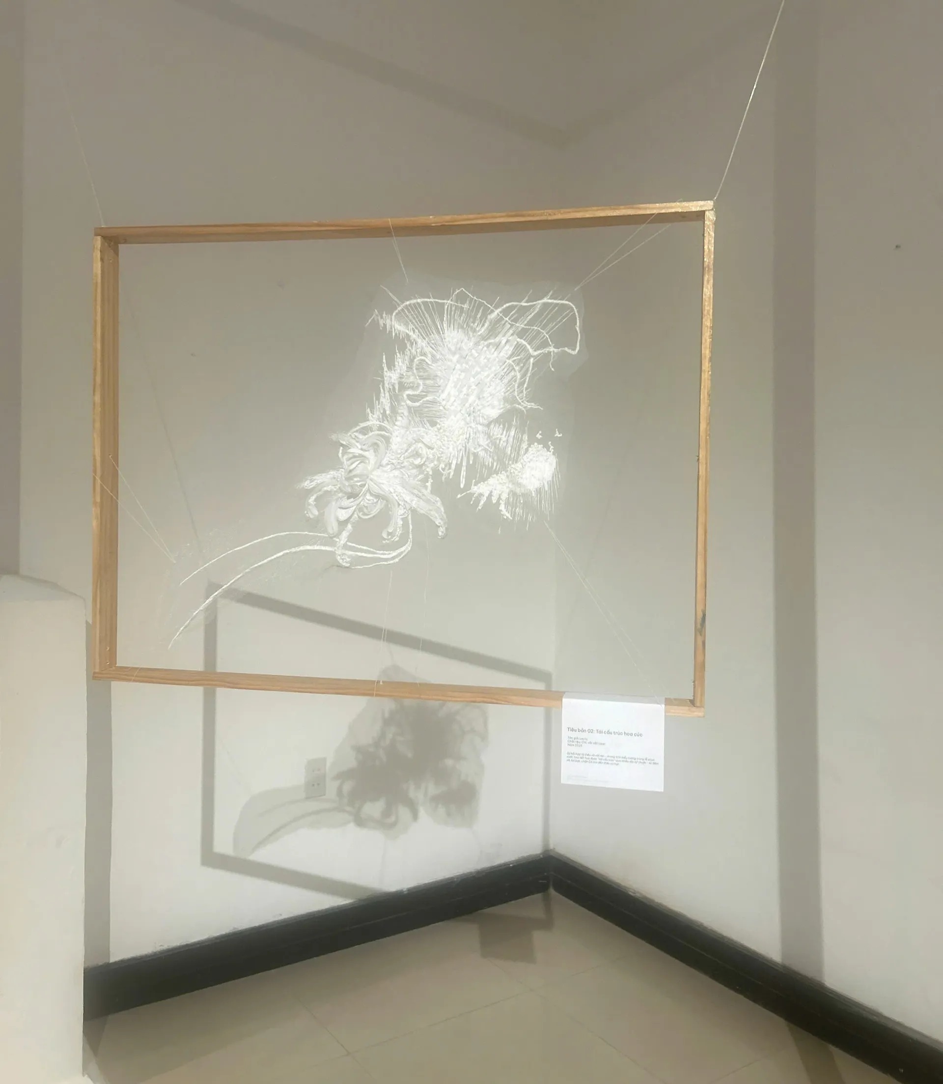 Trong không gian trưng bày, công chúng sẽ được chiêm ngưỡng tác phẩm độc đáo “Tiêu bản cắt 6 lớp” – một ẩn dụ thị giác cho quá trình tái cấu trúc di sản. Tác phẩm được bóc tách thành 6 lát cắt, tái hiện hành trình xuyên suốt các làng nghề thêu truyền thống trứ danh miền Bắc – Trung bộ, từ thêu long bào ở Đông Cứu đến thêu tranh ở Quất Động. Qua lăng kính sáng tạo “Khắc – Khảm – Cắt”, nghệ thuật thêu được khoác lên diện mạo mới, vừa tôn vinh giá trị cổ truyền vừa khơi gợi tư duy đương đại.