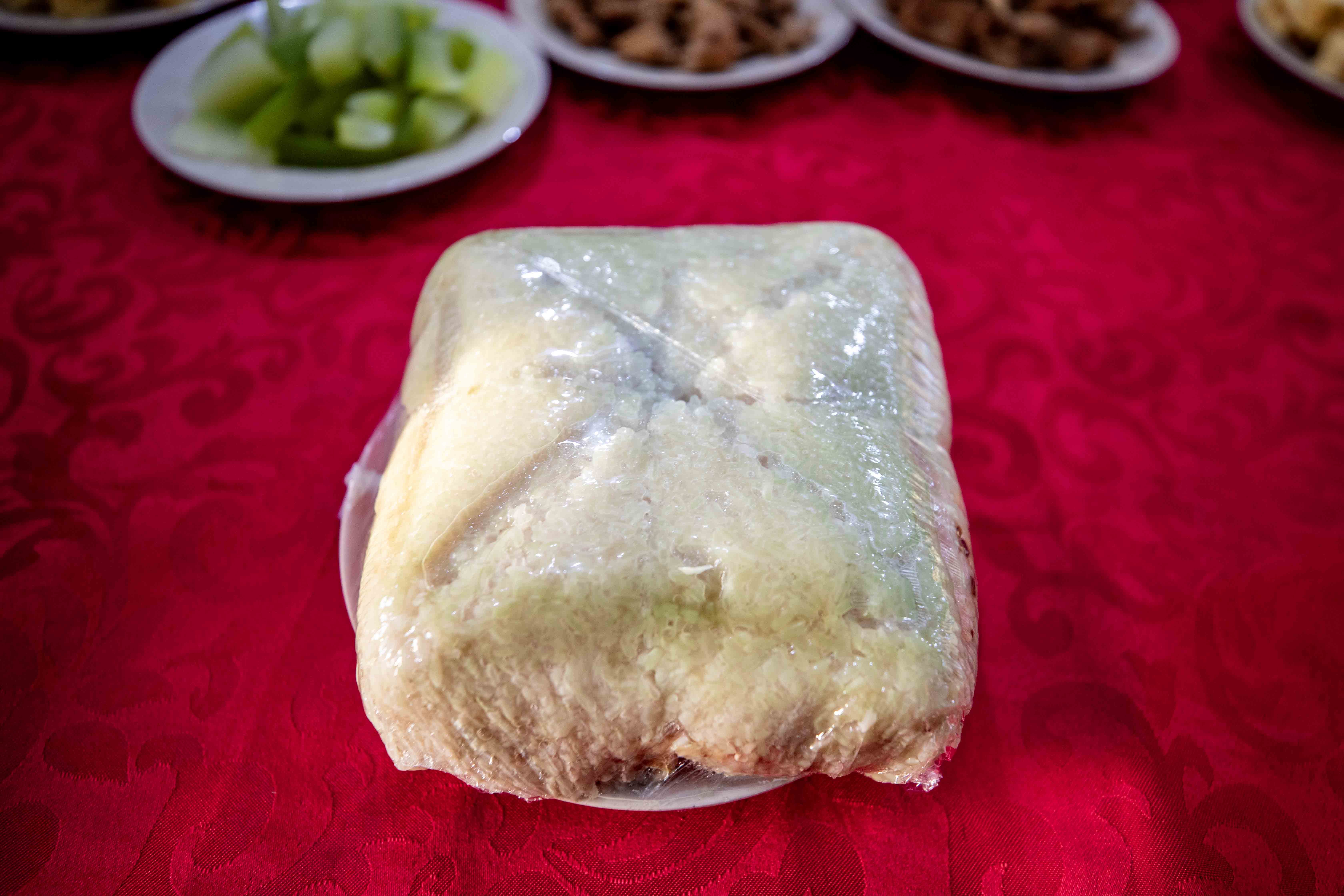 Lá dong và gạo nếp được giữ cẩn thận như giữ hộ mùi quê nhà. Chỉ cần mở nắp thùng, hương nếp đã thoảng ra. Không sắc màu. Không ồn ào. Nhưng đủ để đánh thức những ngày giáp Tết rất xa khi bếp lửa đỏ lên trong gió lạnh, khi cả nhà chờ nồi bánh sôi.