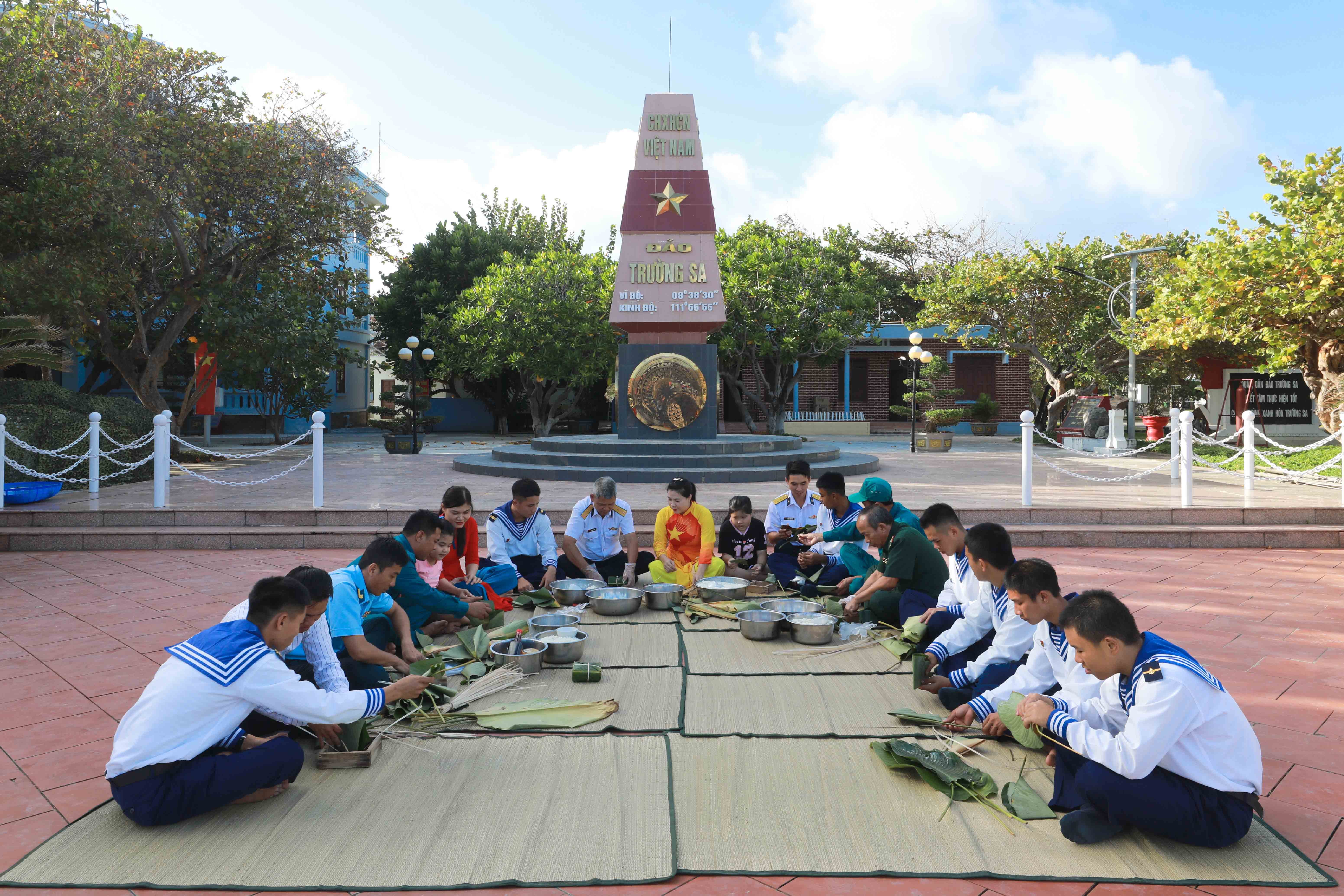 Không chỉ có bộ đội Hải quân. Những bàn tay cùng chạm vào lá dong, gạo nếp hôm ấy đến từ nhiều lực lượng: Phòng không – Không quân, Bộ đội Biên phòng, viên chức địa phương, người dân sinh sống trên đảo. Có cả trẻ em, những đứa trẻ lớn lên giữa biển, nhưng vẫn háo hức chờ Tết như bao đứa trẻ nơi đất liền.