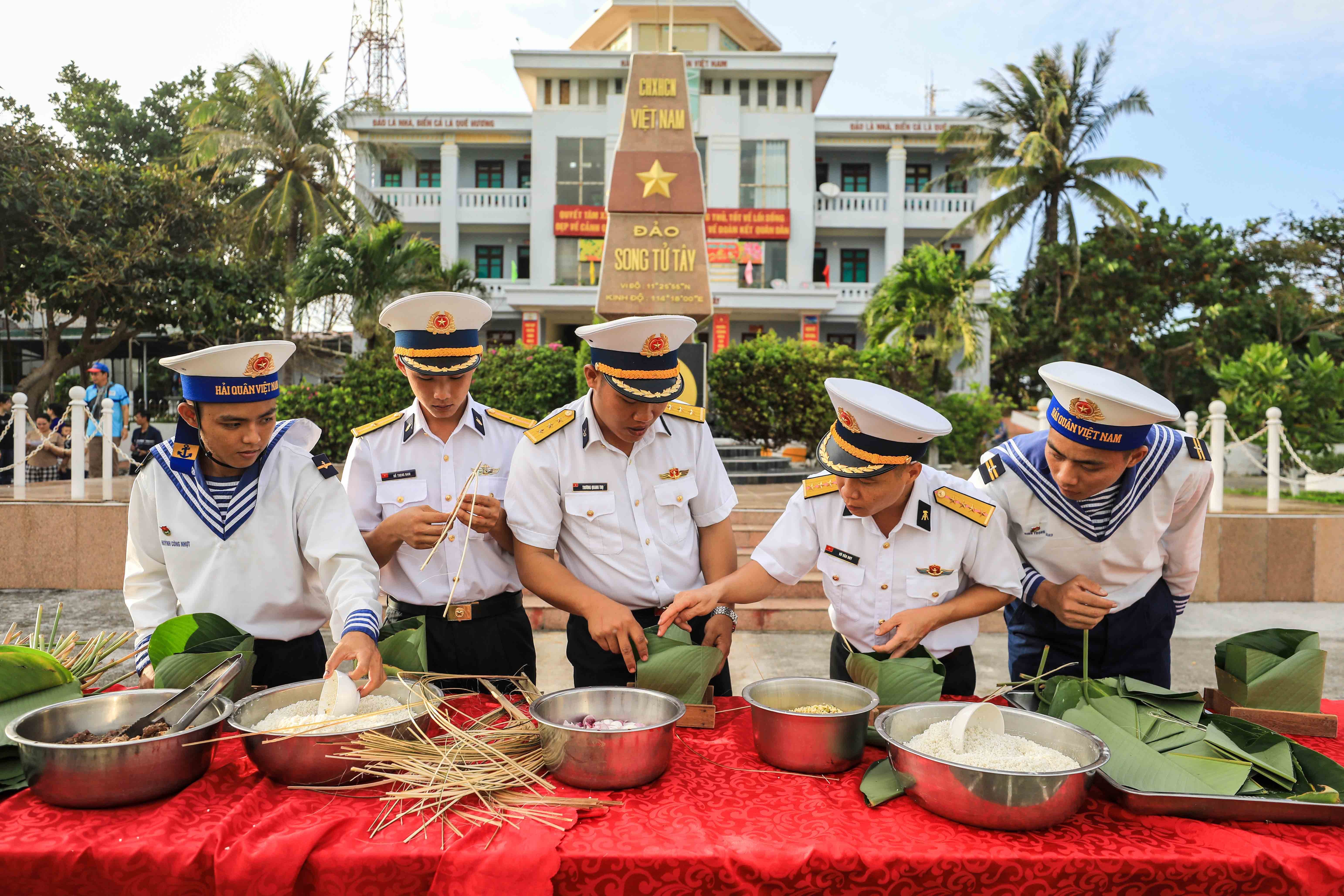 Bộ đội trên đảo Song Tử Tây tổ chức gói bánh chưng