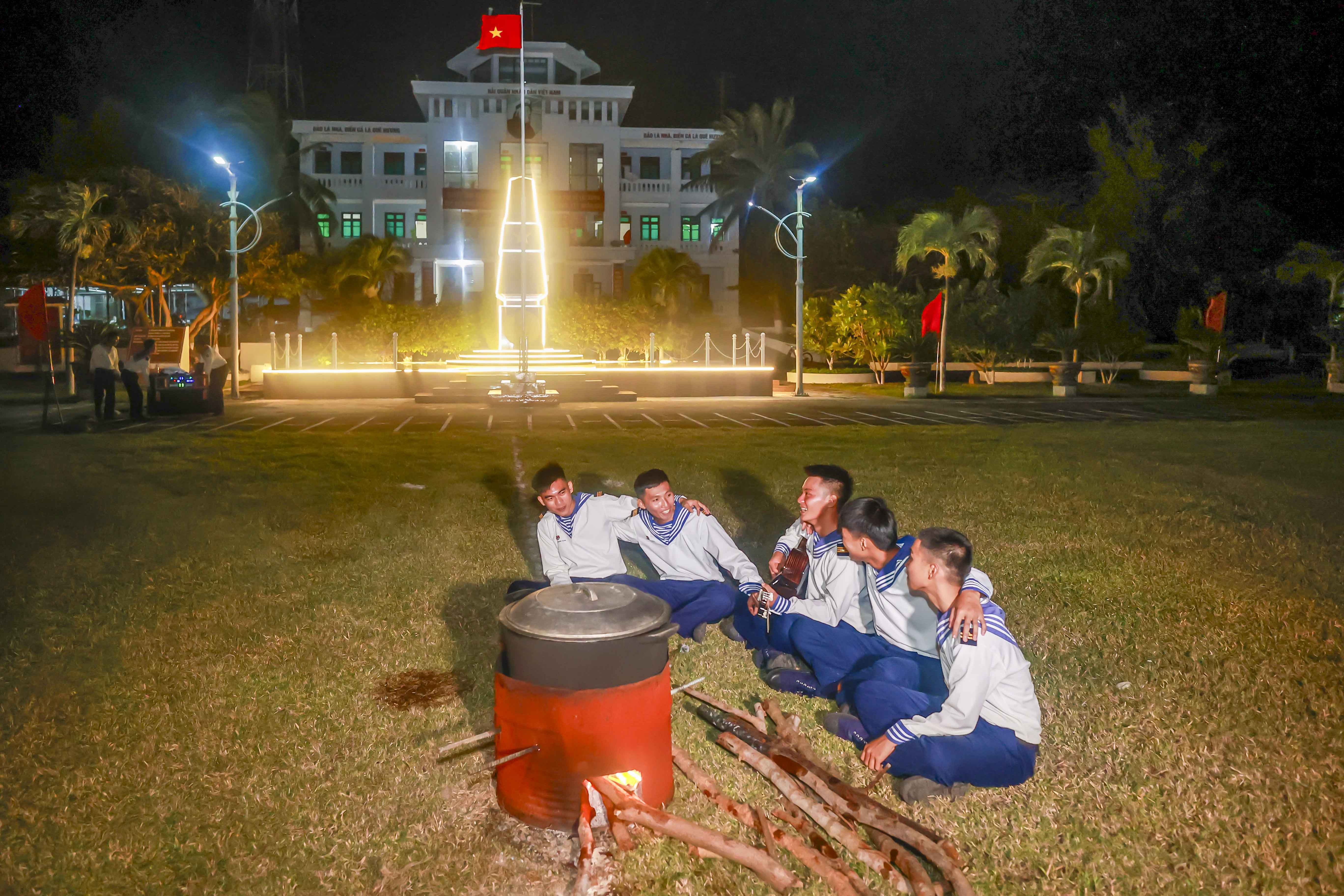 Hơi nước bốc lên, mang mùi nếp lan trong gió đêm. Những bài hát cách mạng được cất lên. Rồi những ca khúc viết về Trường Sa. Tiếng hát không cần lớn. Nhưng vang. Vang giữa sân đảo. Vang trong gió. Vang vào đêm biển. Có người hát. Có người chỉ ngồi nghe. Nhưng ai cũng thấy lòng mình ấm lại.