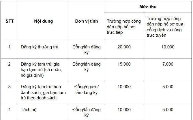 Mức lệ phí đăng ký cư trú