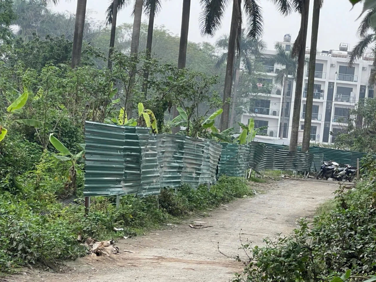 Hàng rào tôn do các đối tượng lạ mặt tự ý dựng lên để chiếm đất của Công ty Bình Nguyên.