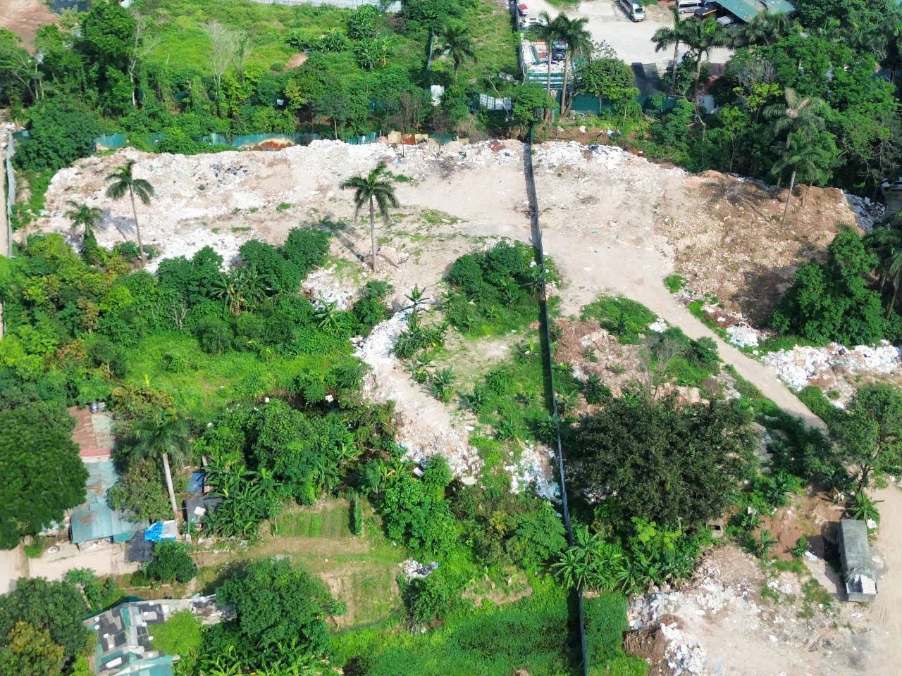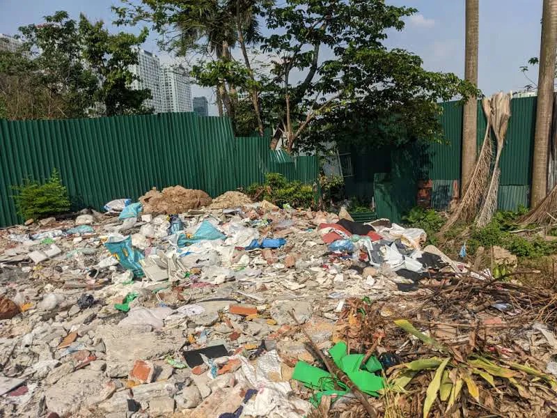 Một lượng lớn trạc thải và chất thải rắn đã bị đổ trái phép để san lấp mặt bằng.