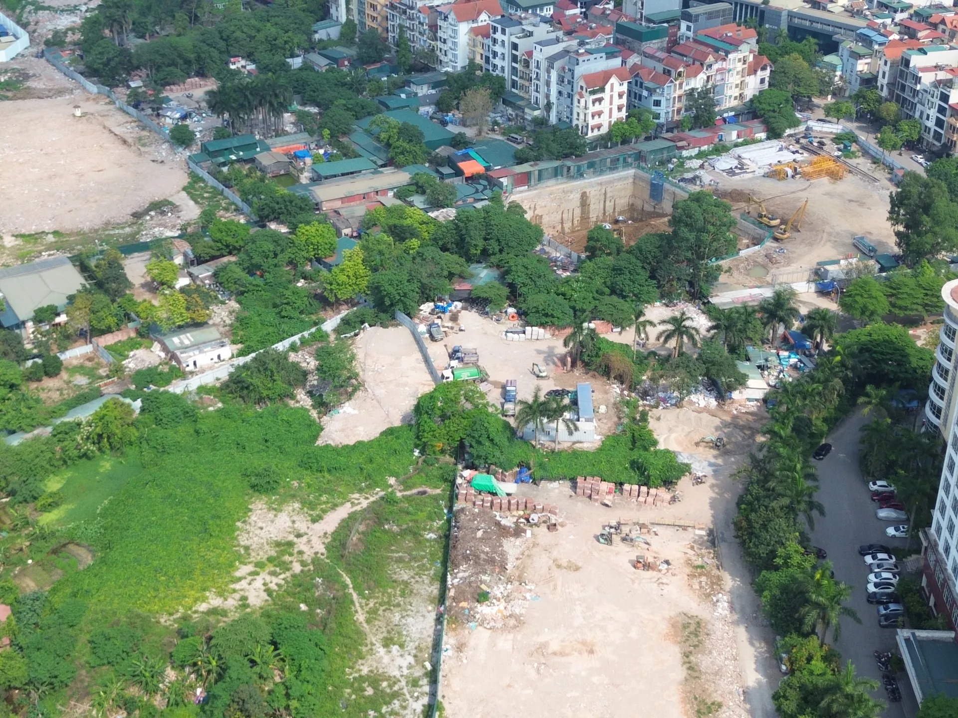 Toàn cảnh bãi vật liệt và dãy rào tôn dài tít tắp nhìn từ trên cao.