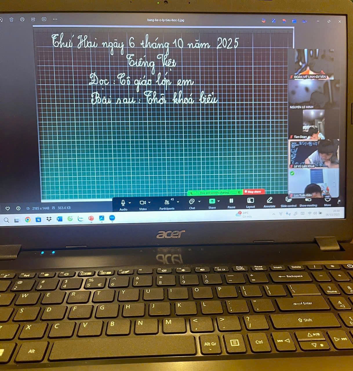 Nhiều học sinh nghỉ học ngày 8/10 do mưa lớn nên học online. Nguồn: Trường tiểu học Chu Văn An