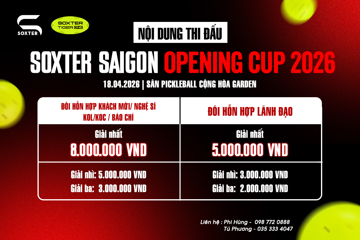 Với sự chuẩn bị kỹ lưỡng cùng tầm nhìn dài hạn, “Soxter Saigon Opening Cup 2026” được kỳ vọng sẽ trở thành một trong những sự kiện tiêu biểu, mở ra giai đoạn phát triển mới cho Soxter tại thị trường phía Nam, đồng thời góp phần thúc đẩy sự lan tỏa của pickleball tại Việt Nam.