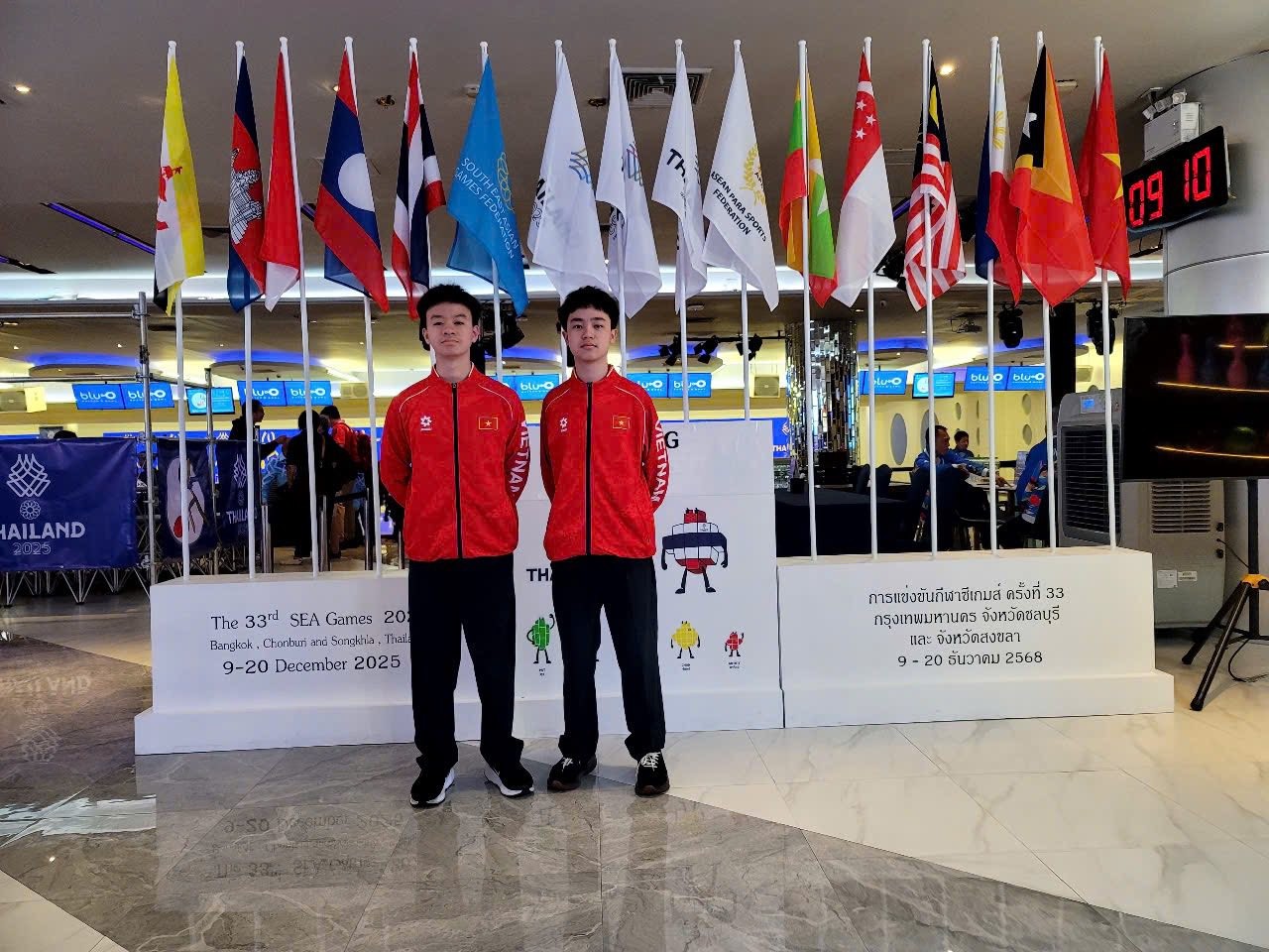 Trần Hoàng Khôi (phải) đã làm nên lịch sử cho bowling Việt Nam tại SEA Games 33 (Ảnh webthethao)