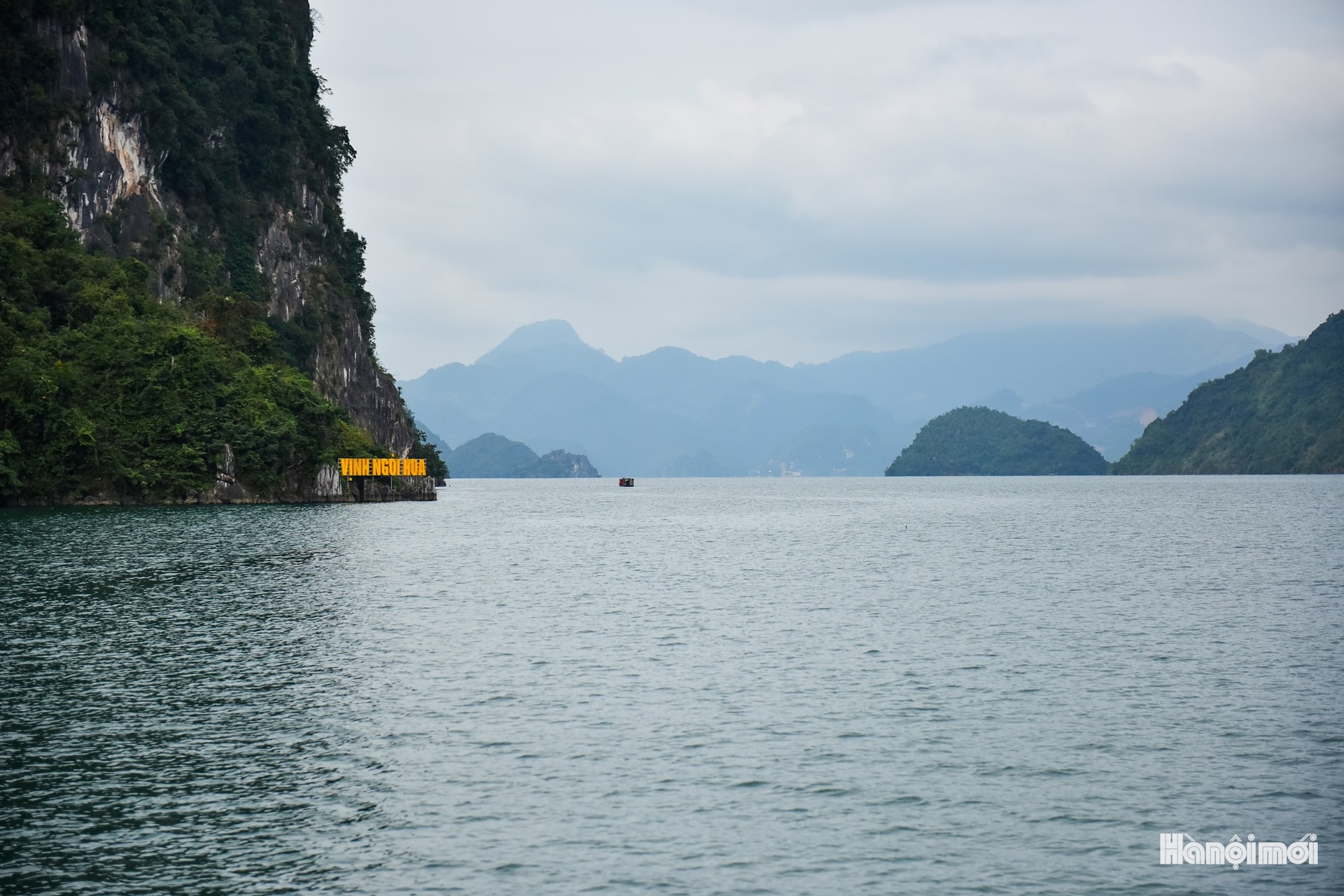 Chào đón du khách là khung cảnh hồ Hòa Bình rộng lớn, nước phẳng lặng và những khối đảo đá vôi nhấp nhô như “vịnh Hạ Long trên cạn” của miền Tây Bắc.