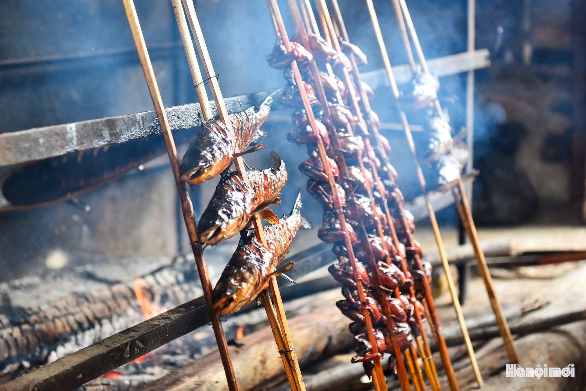 Cá sông Đà nướng là món ăn không thể bỏ qua sau một ngày dài với nắng gió trên hồ.
