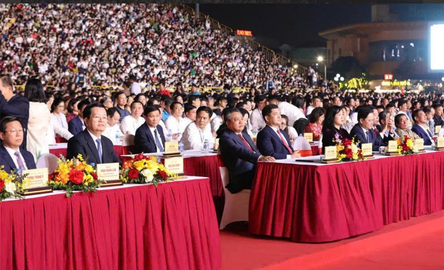 Điểm nhấn kết thúc buổi lễ là màn trình diễn ánh sáng (drone light show) kết hợp pháo hoa nghệ thuật rực rỡ, tái hiện hành trình từ cội nguồn văn hiến đến tương lai phát triển của tỉnh, để lại ấn tượng sâu đậm trong lòng người dân và bạn bè quốc tế.