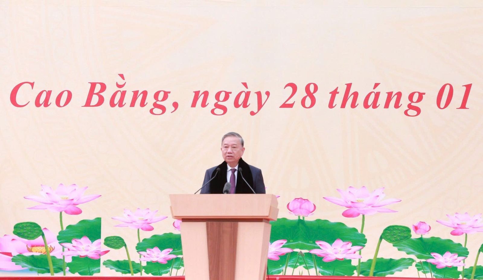 Nhấn mạnh chặng đường phía trước còn nhiều việc lớn, việc khó nhưng với truyền thống cách mạng vẻ vang, với tinh thần đoàn kết, với niềm tin và sự đồng lòng của Nhân dân các dân tộc, Tổng Bí thư Tô Lâm tin tưởng rằng Cao Bằng sẽ cùng cả nước bước đi vững chắc trên con đường phát triển, đóng góp xứng đáng vào tương lai của dân tộc Việt Nam.