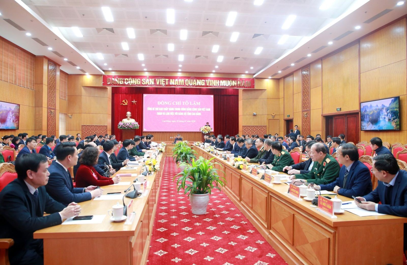 Tổng Bí thư Tô Lâm chủ trì buổi làm việc với với Ban Chấp hành Đảng bộ tỉnh Cao Bằng.