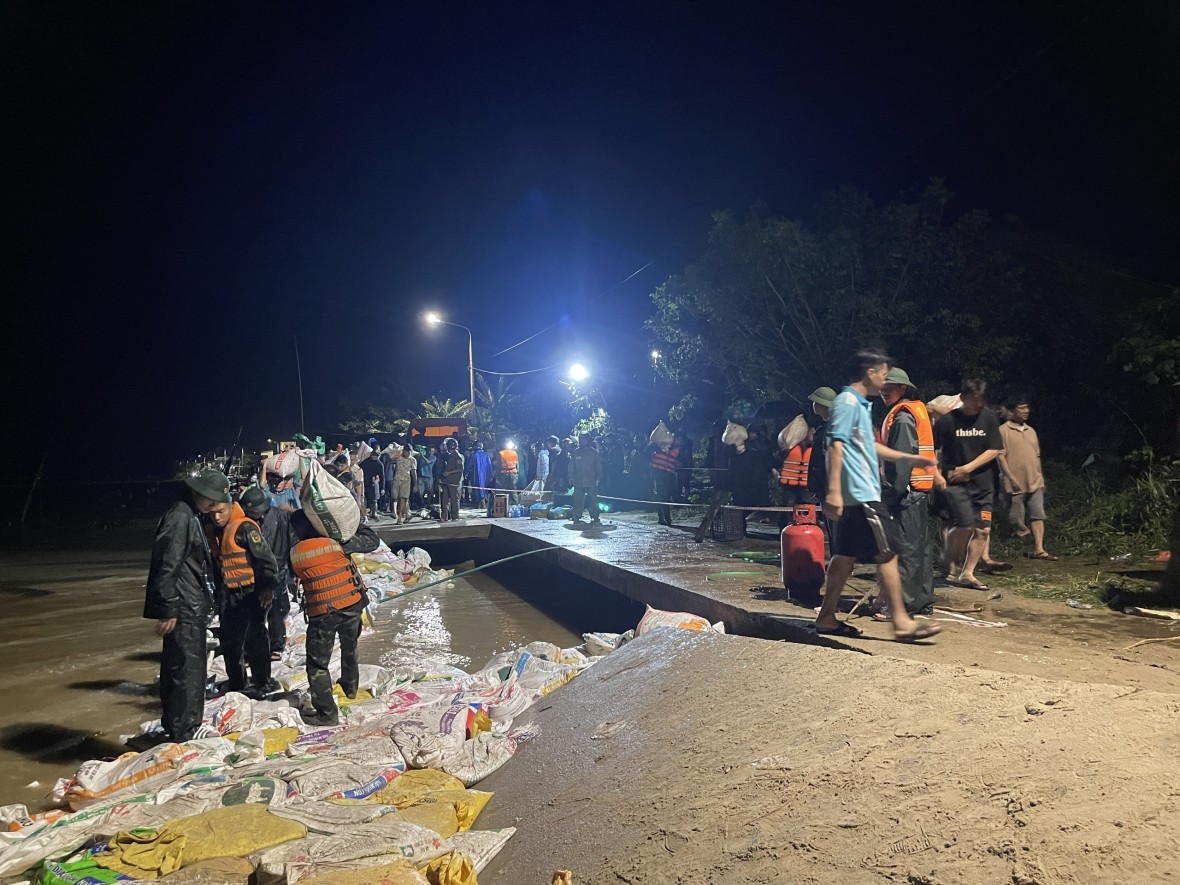 Đến rạng sáng ngày 30/10, các vị trí sạt lở chính cơ bản đã được gia cố tạm thời, giảm nguy cơ vỡ kè.