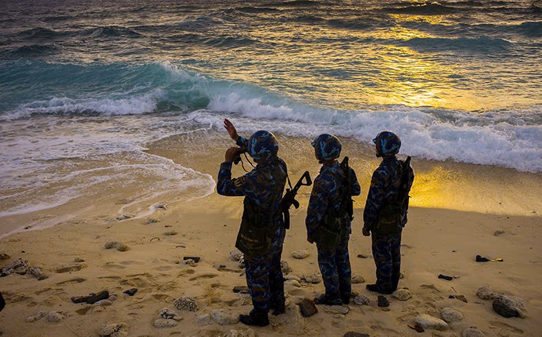 Buổi tập điều lệnh đội ngũ trên đảo Trường Sa