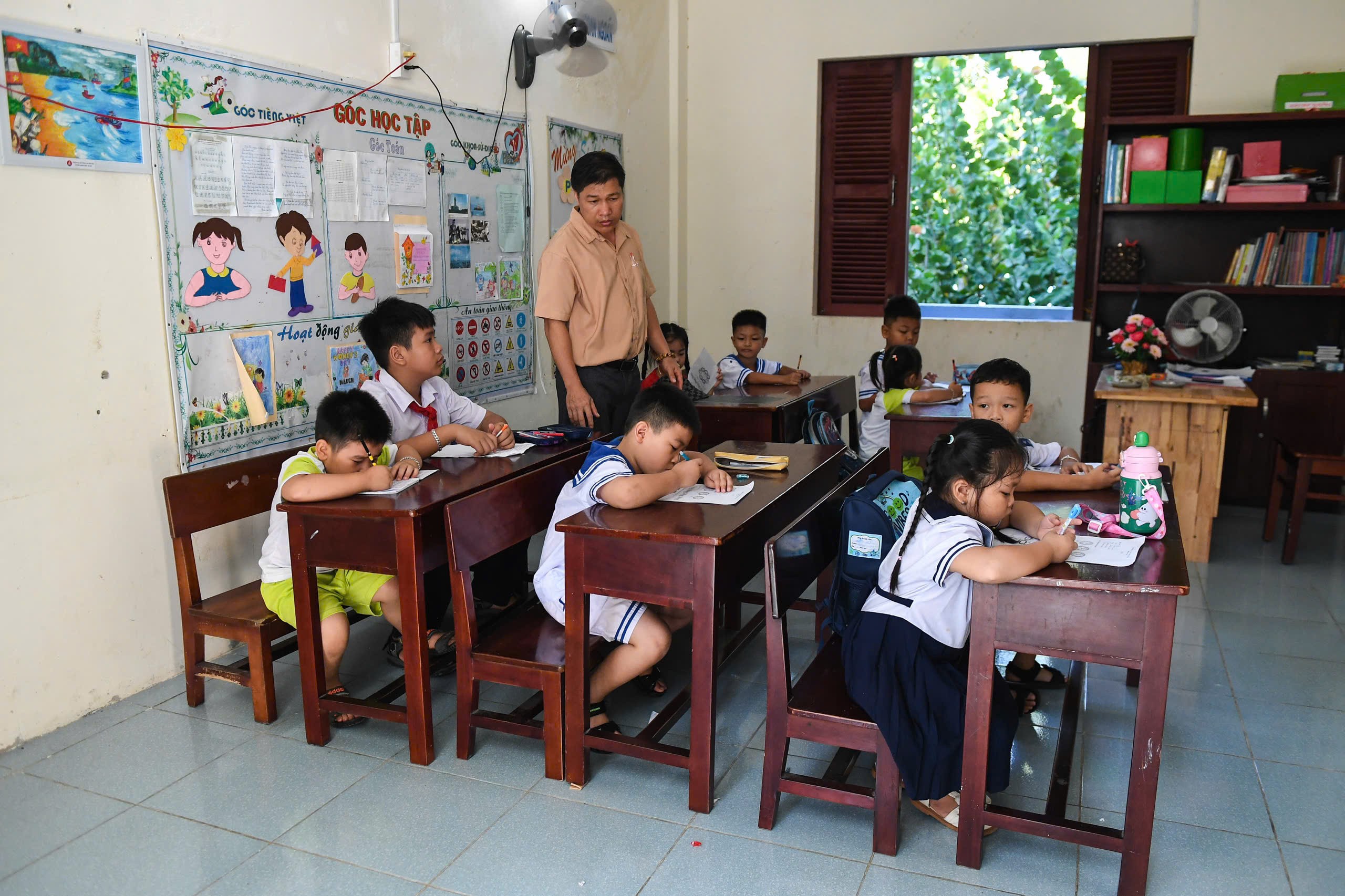 Lớp học của các em Học sinh tiểu học ở trên đảo ươm mầm cho tình yêu quê hương, đất nước, biển, đảo từ thuở ấu thơ